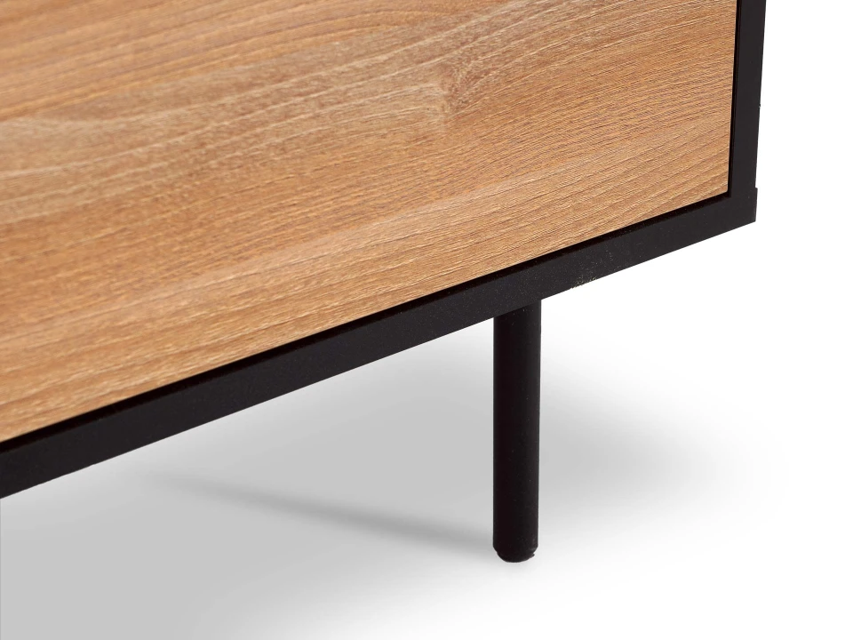 Особенность линейки заключается в контрасте элементов. Скругленные изящные металлические ножки поддерживают внушительное основание. При этом внешний вид моделей остается лёгким и элегантным. Также игру противоположностей усиливают древесная текстура на фасадах и черный цвет боковин с задней стенкой. Что придаёт большей динамики и выразительности дизайну. Эксклюзивность и завершенный вид воссоздает рамка, возвышающаяся над верхним горизонтом. Минималистичный вид конструкциям обеспечивает скрытая фурнитура. Двери и ящики открываются плавно, без шума и усилий. Комбинируйте комоды и серванты Look для создания целостного образа интерьера.