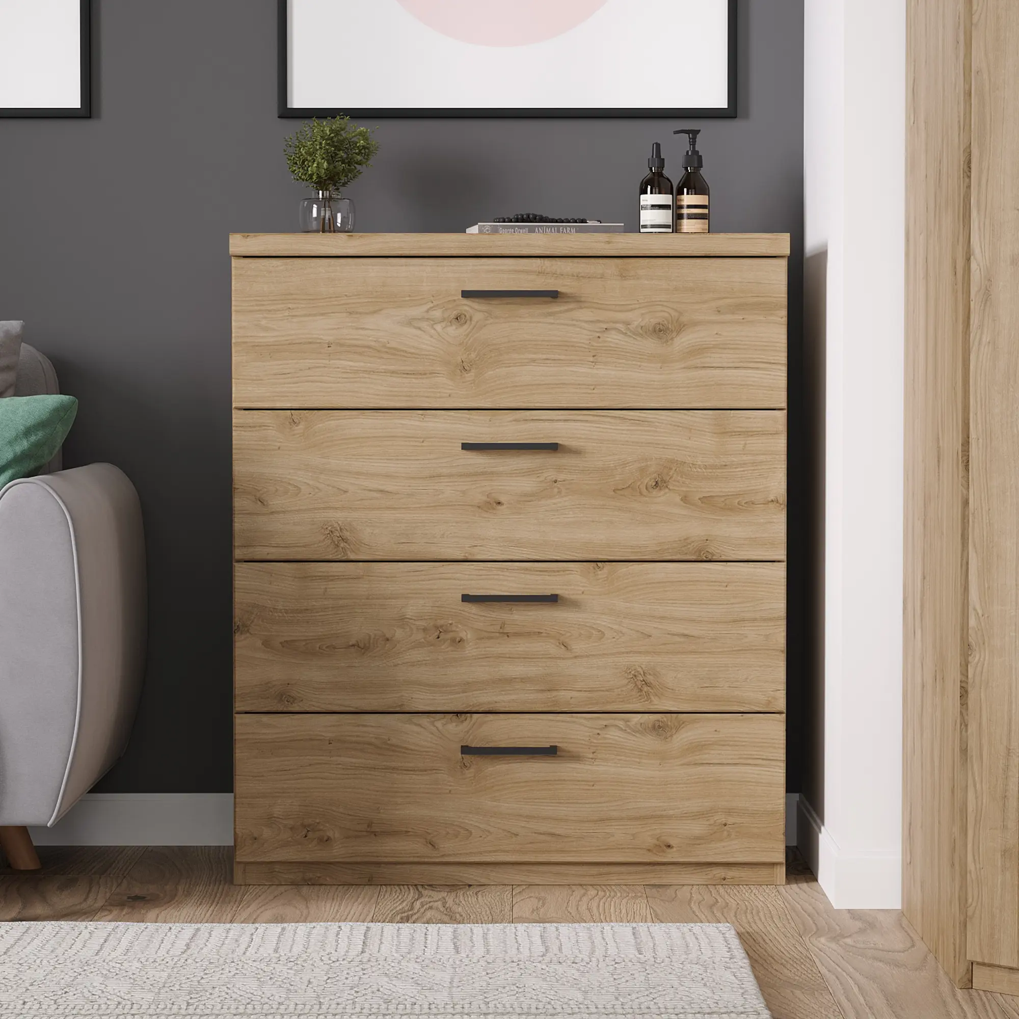 Комод Doorset 4S – универсальная модель для спальни, детской, гостиной и прихожей. В его выдвижных ящиках можно хранить все, от белья для новорожденного и средств по уходу до дисков, документов и семейных фотоальбомов. Эта компактная модель придаст интерьерам гармонии и наведет порядок.