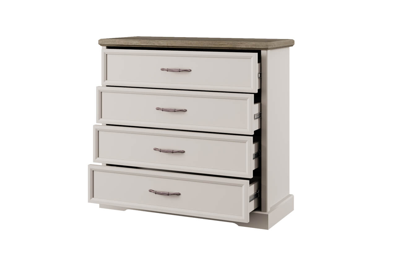 Особенностью модели является наличие четырёх просторных ящиков, которые предоставляют достаточно места для хранения одежды, белья или других предметов. Благодаря этому вы сможете поддерживать порядок в доме и удобно разместить всё необходимое.