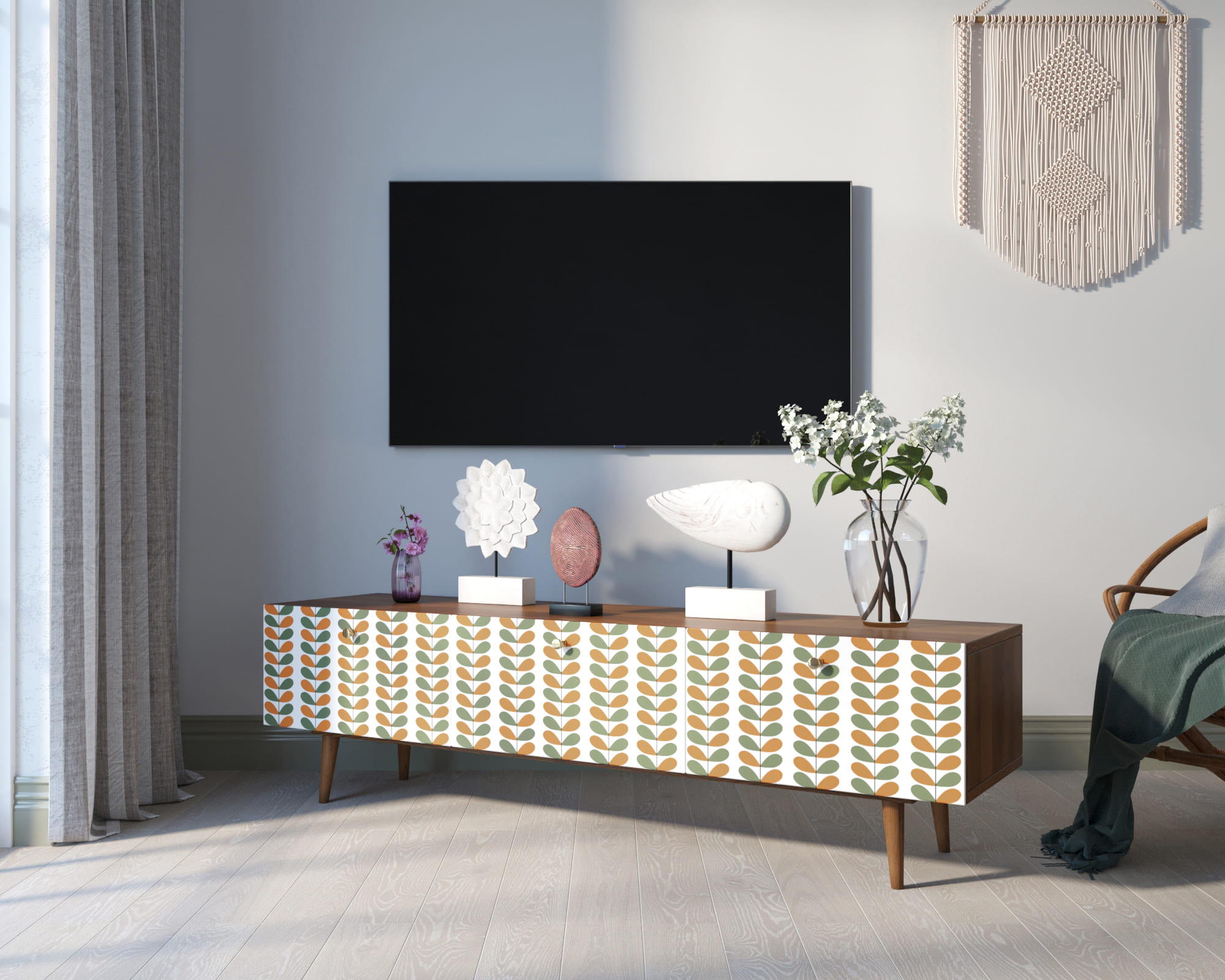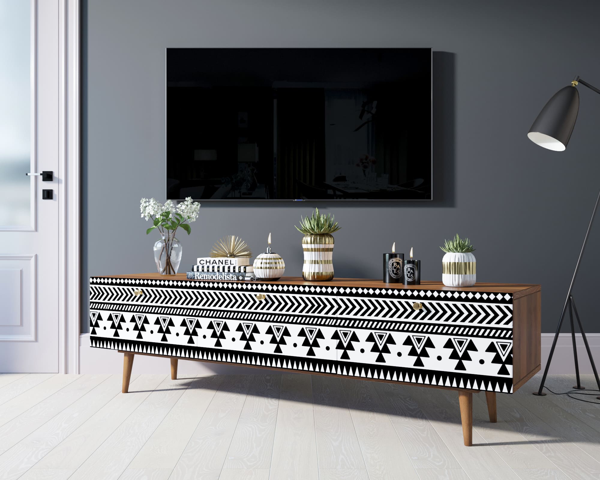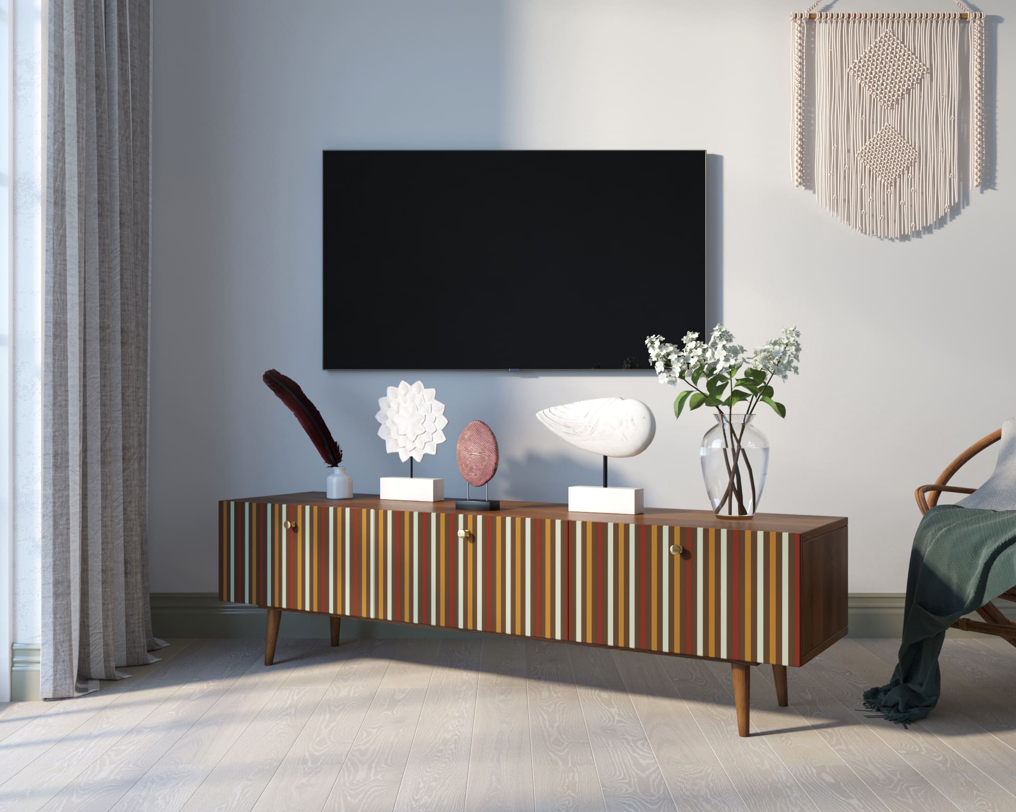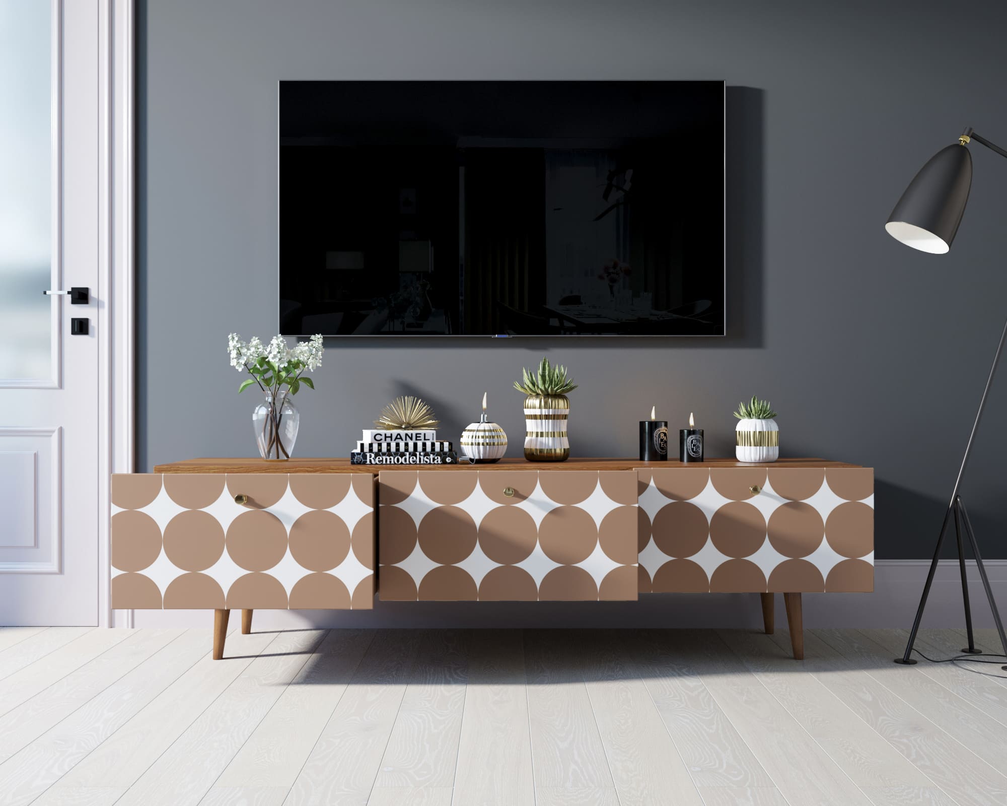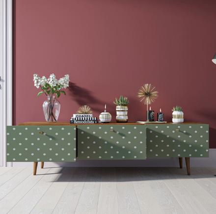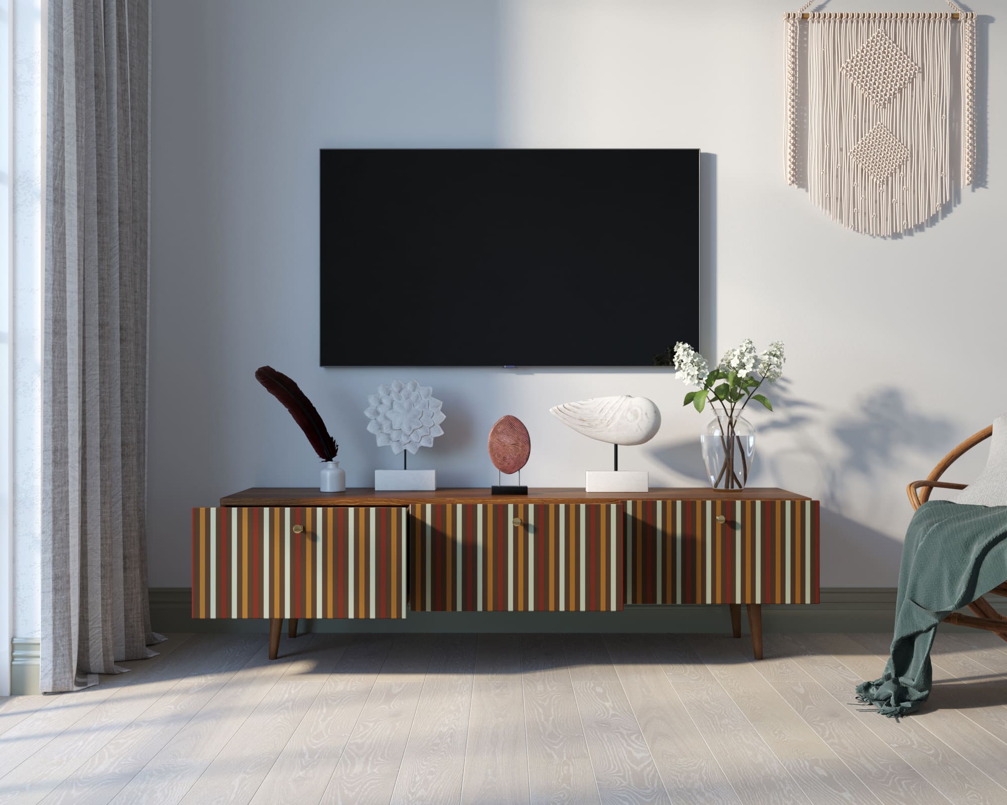 Ширина комода 180 см, что позволяет достаточно эстетично смотреться с широкоформатными телевизорами.
