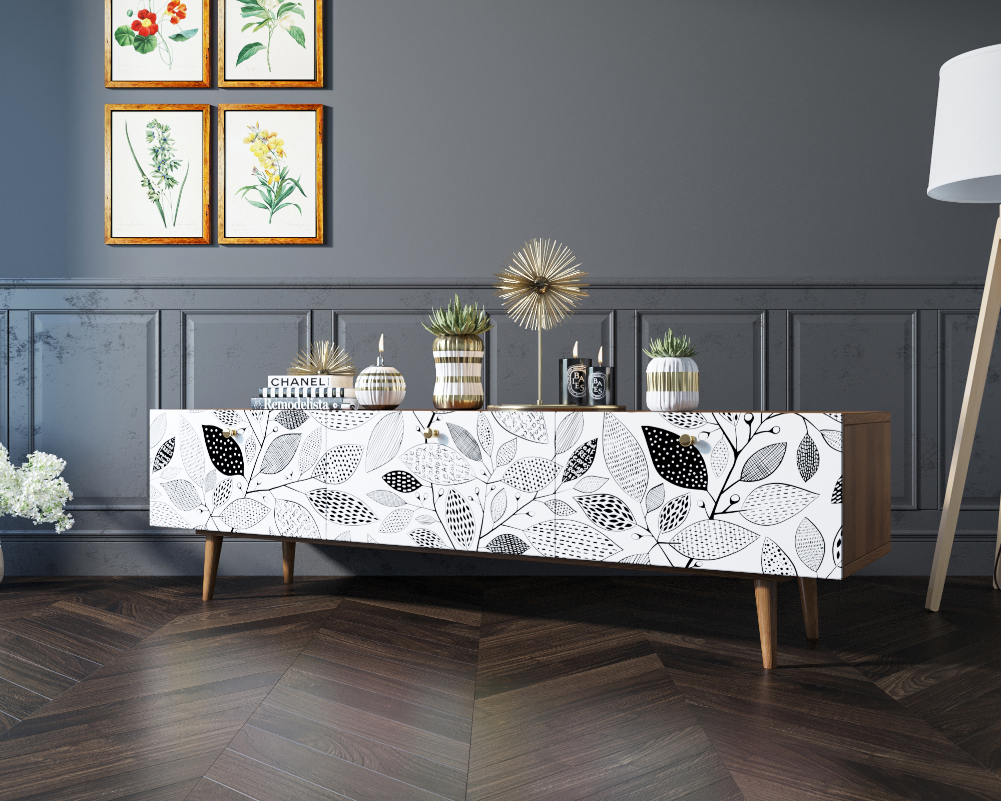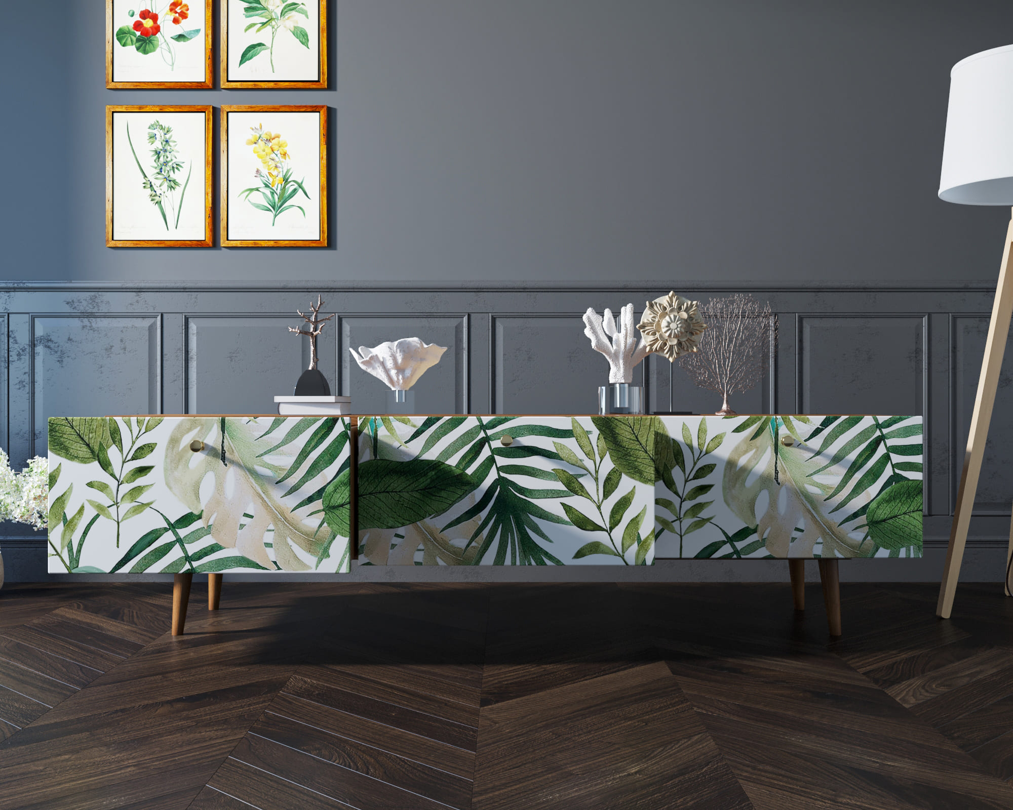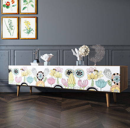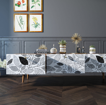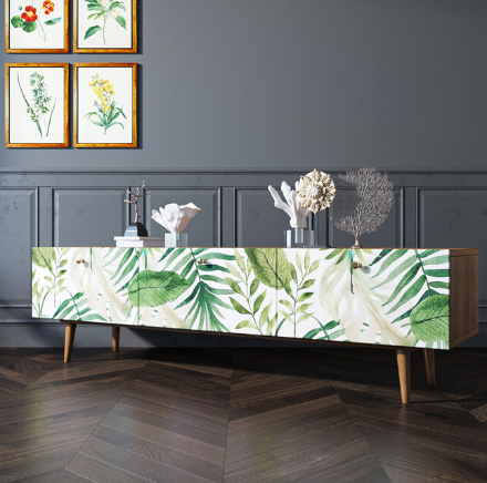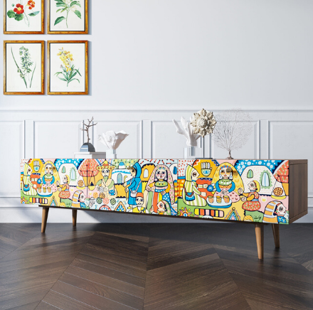 Особое внимание стоит уделить принту на фасадах комода. Он наносится специальным УФ-принтером, который обеспечивает яркость и долговечность изображения. Принтер использует специальные УФ-чернила, которые не выцветают под воздействием солнечных лучей и сохраняют яркость цветов на долгие годы.