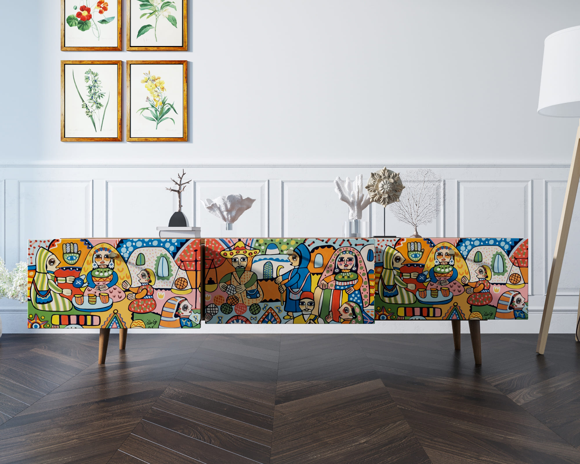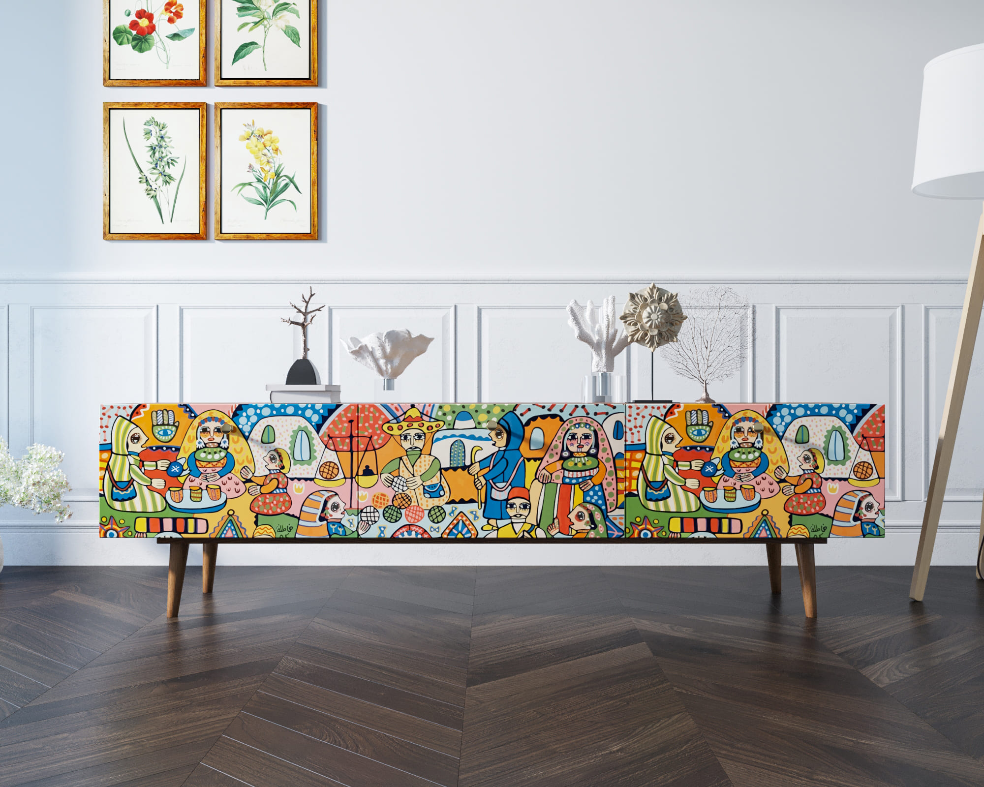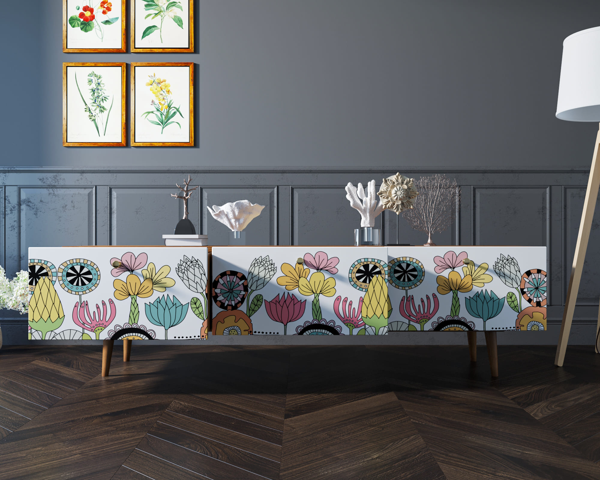 Особое внимание стоит уделить принту на фасадах комода. Он наносится специальным УФ-принтером, который обеспечивает яркость и долговечность изображения. Принтер использует специальные УФ-чернила, которые не выцветают под воздействием солнечных лучей и сохраняют яркость цветов на долгие годы.