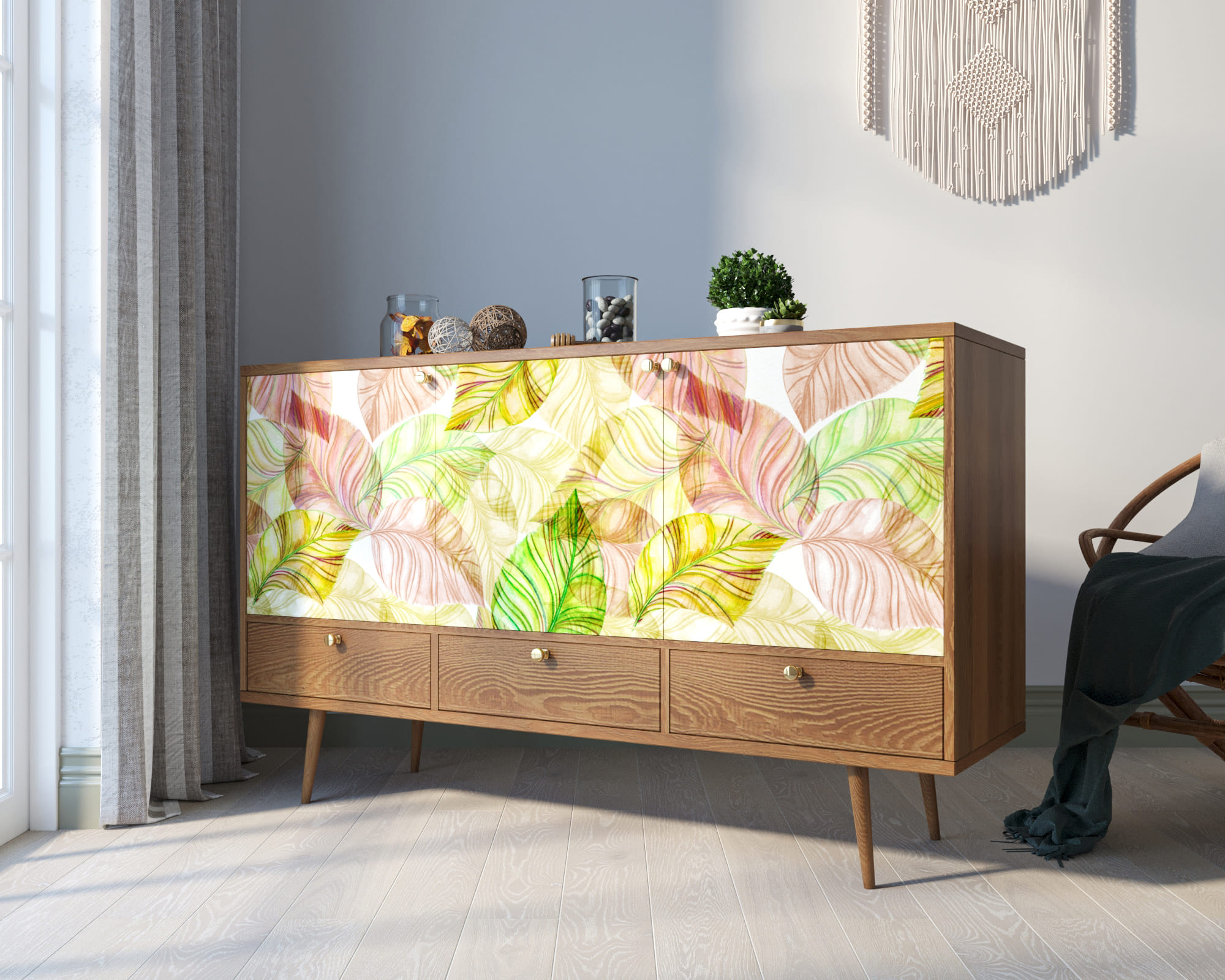 Особое внимание стоит уделить принту на фасадах комода. Он наносится специальным УФ-принтером, который обеспечивает яркость и долговечность изображения. Принтер использует специальные УФ-чернила, которые не выцветают под воздействием солнечных лучей и сохраняют яркость цветов на долгие годы.