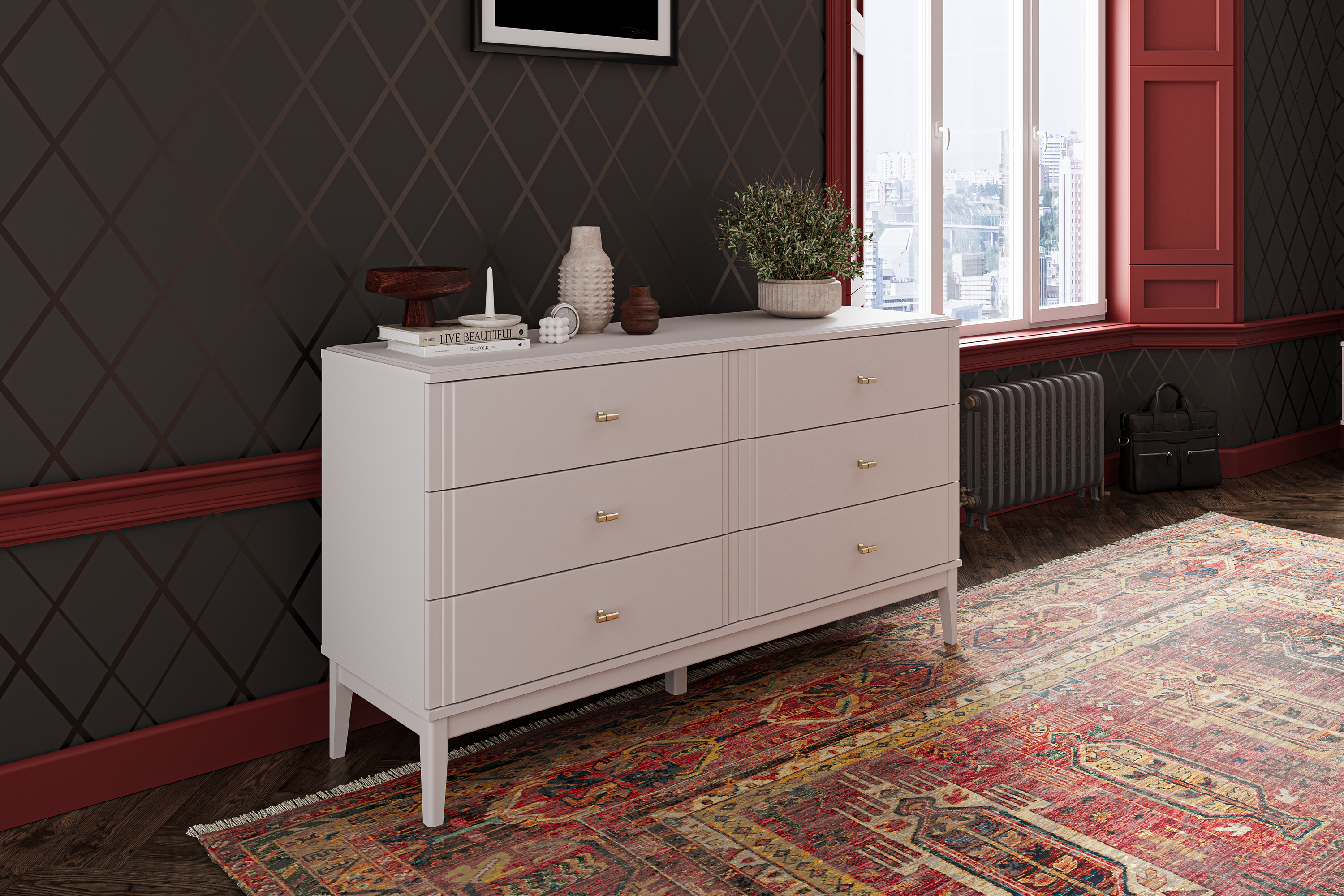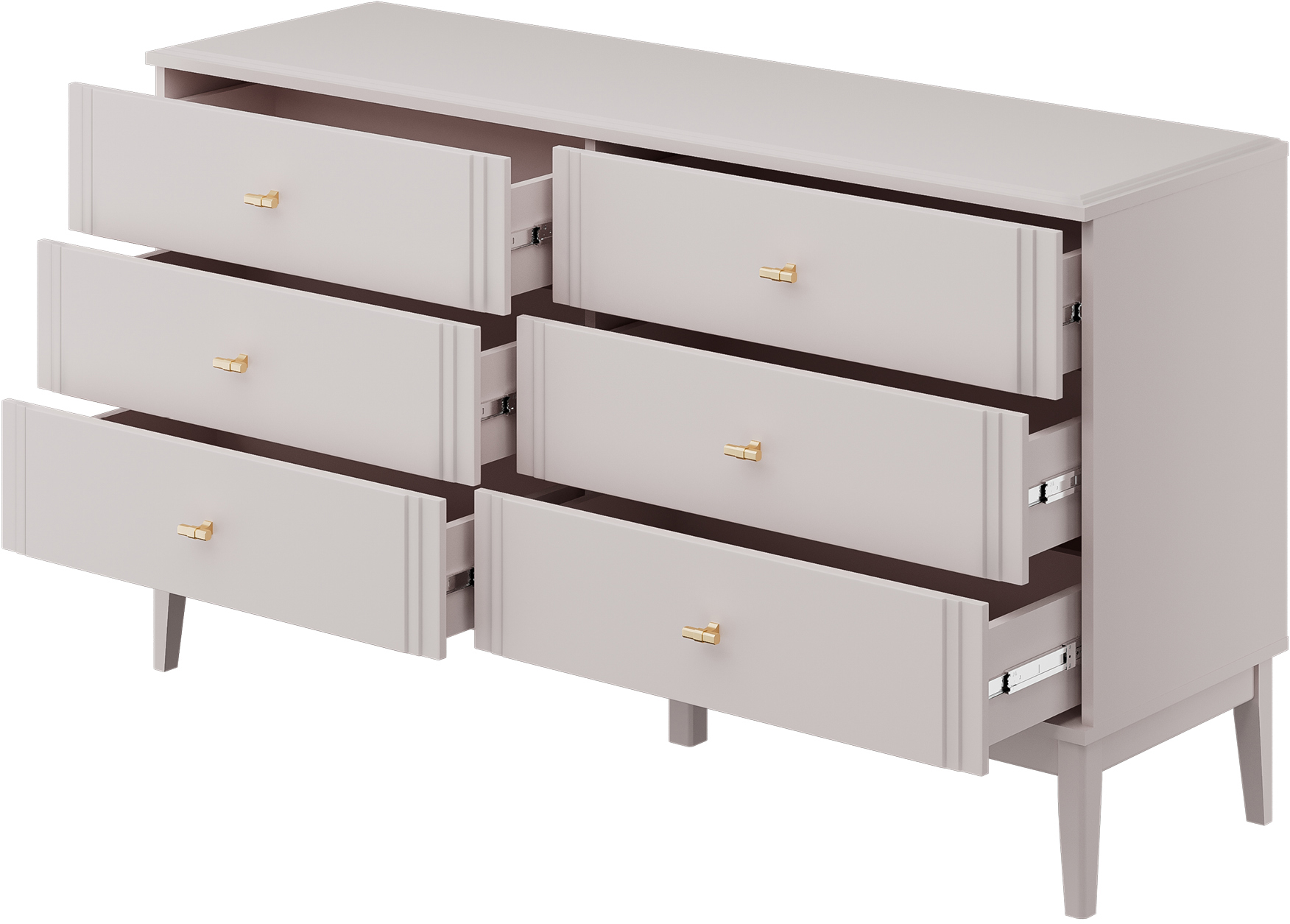 Прочность конструкции продумана до мелочей: надёжный корпус из ЛДСП в сочетании с опорой из массива дерева гарантирует комоду долговечность — он останется устойчивым и презентабельным даже при интенсивной эксплуатации.