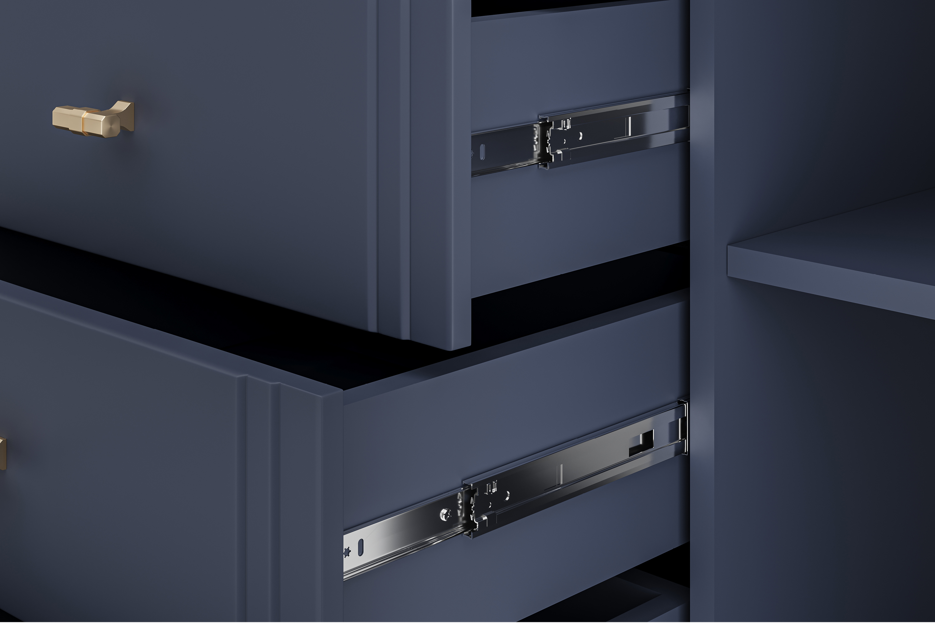 Шесть вместительных ящиков на шариковых направляющих полного выдвижения открывают доступ к каждому уголку без усилий: движение плавное, работа — бесшумная.