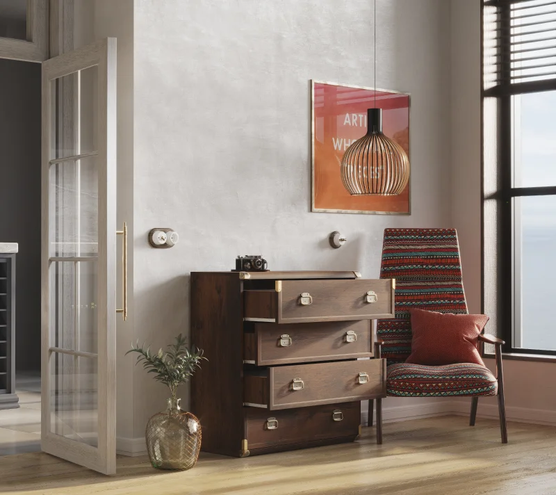 Неброский белорусский комод Indiana с матовой поверхностью и грубоватой текстурой дуба саттер олицетворяет деревенский уют и размеренность. Этот неотъемлемый атрибут этно-коллекции гармонично сочетается с другой мебелью «Индиана» и помогает обустроить уютный интерьер.