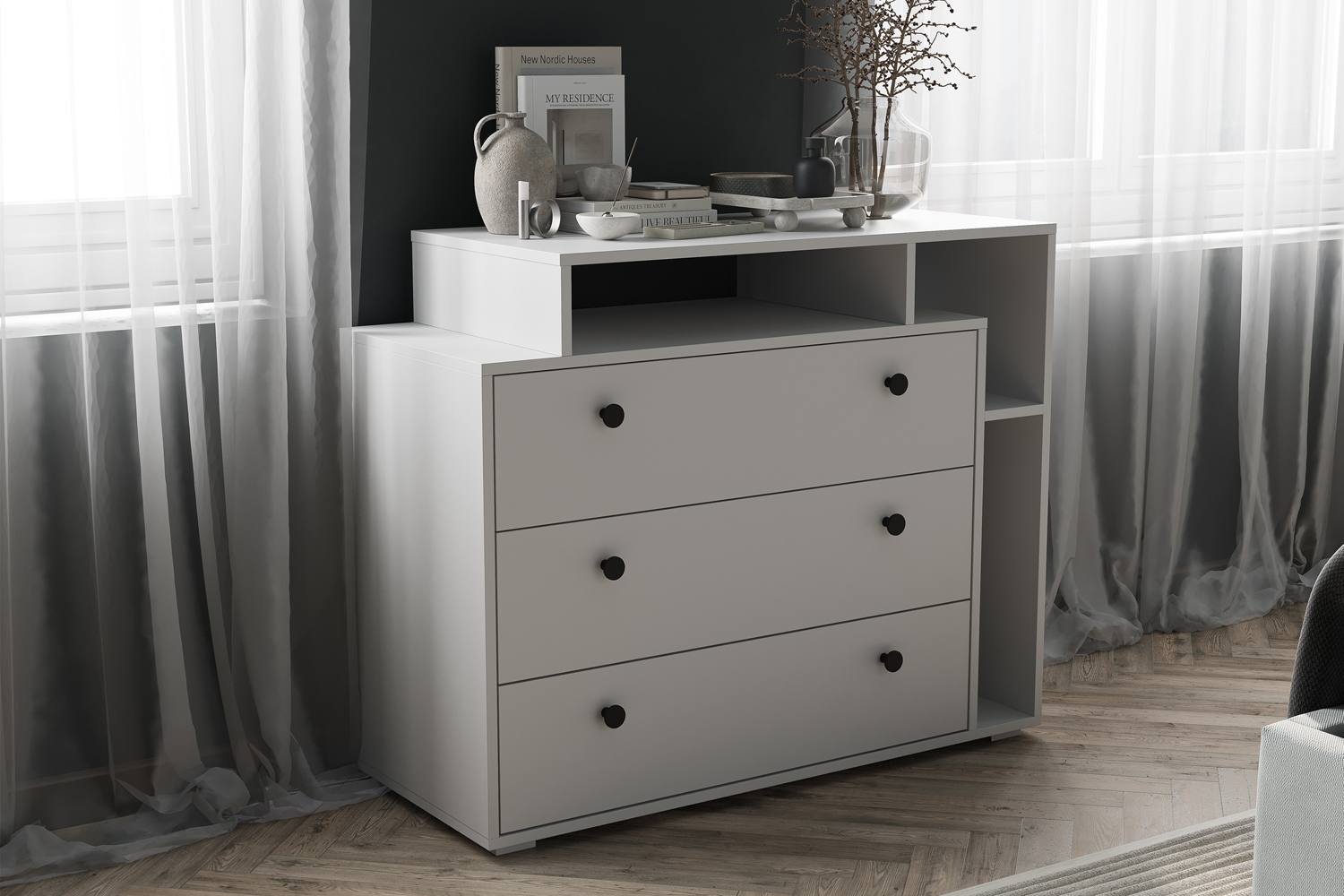 Комод Оскар не только стильный, но и экономичный выбор, обеспечивающий удобное хранение ваших вещей.