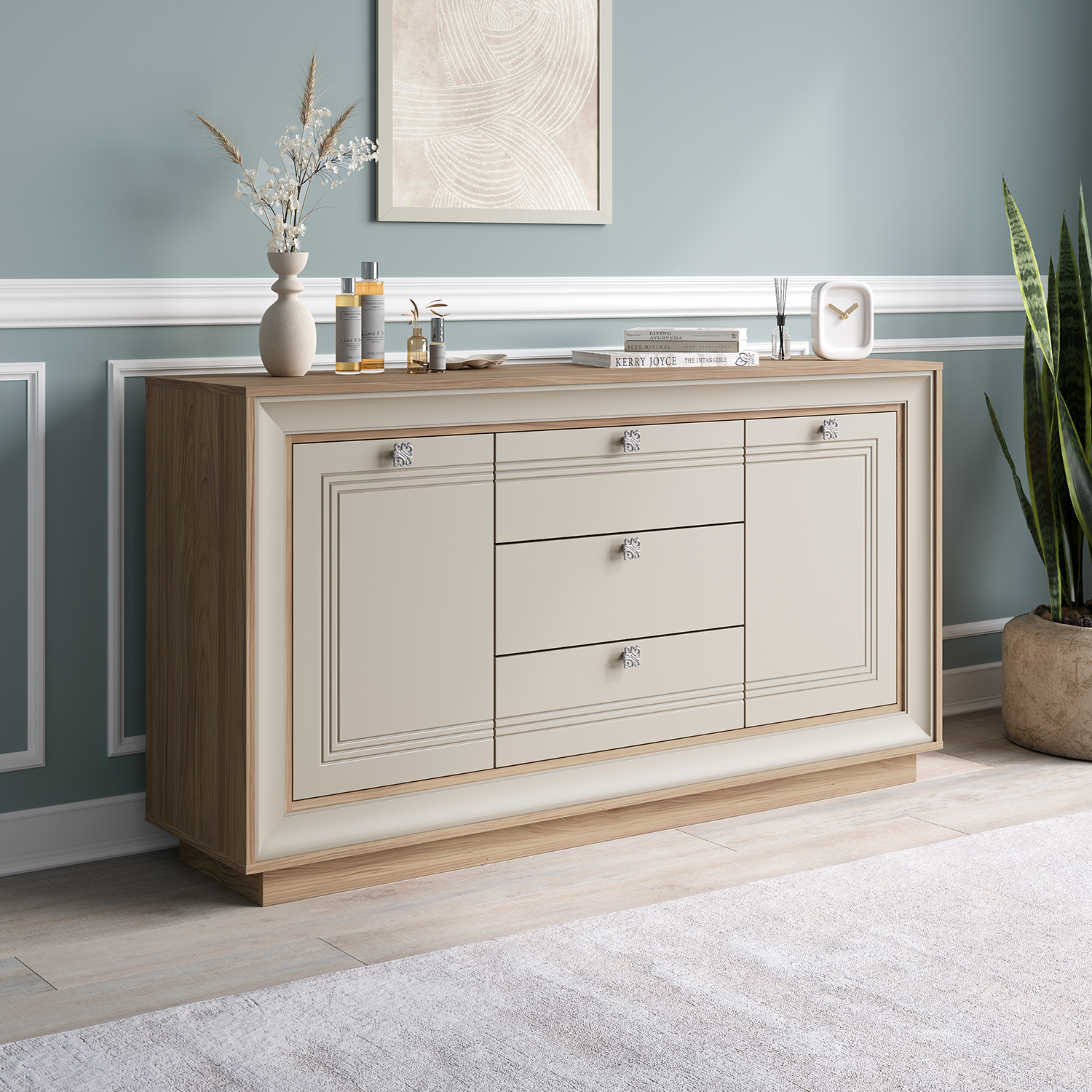 - Универсальность — комод легко вписывается в разные интерьеры, от классических до эклектичных.