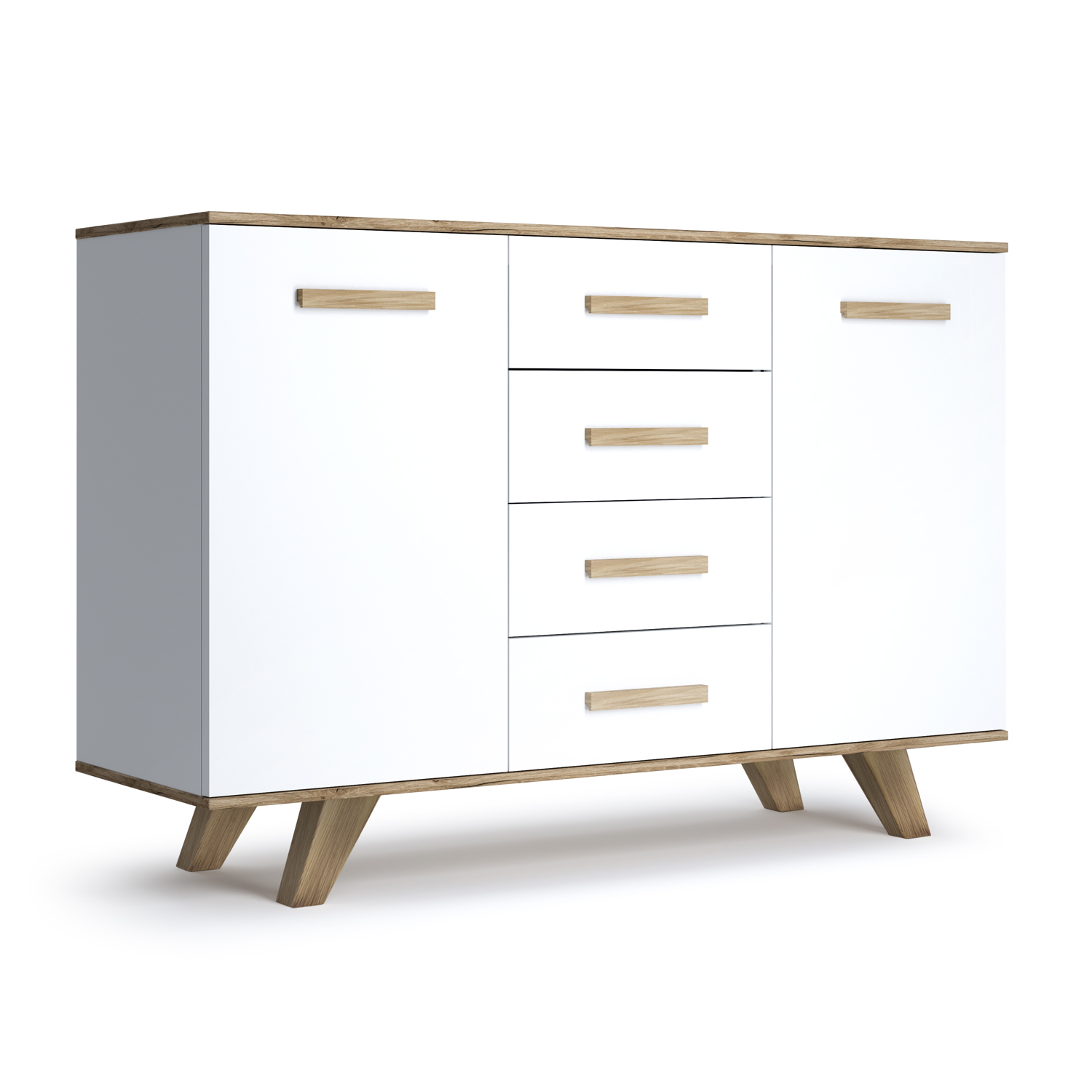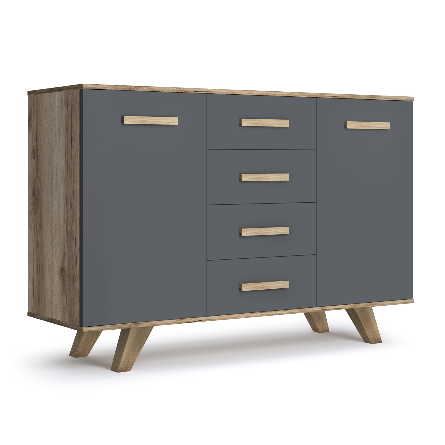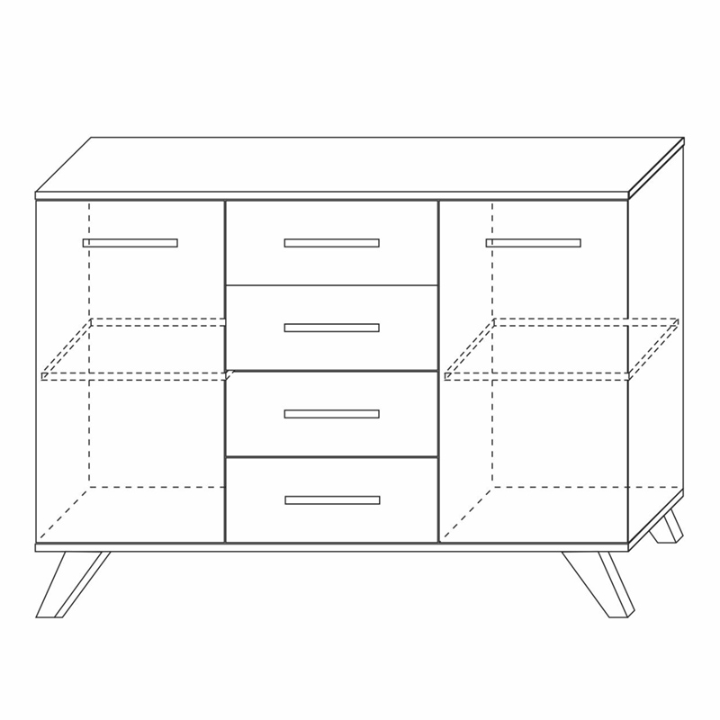 - Вместительность: 4 выдвижных ящика плюс большие отсеки за распашными дверцами — всё продумано для рационального хранения вещей.