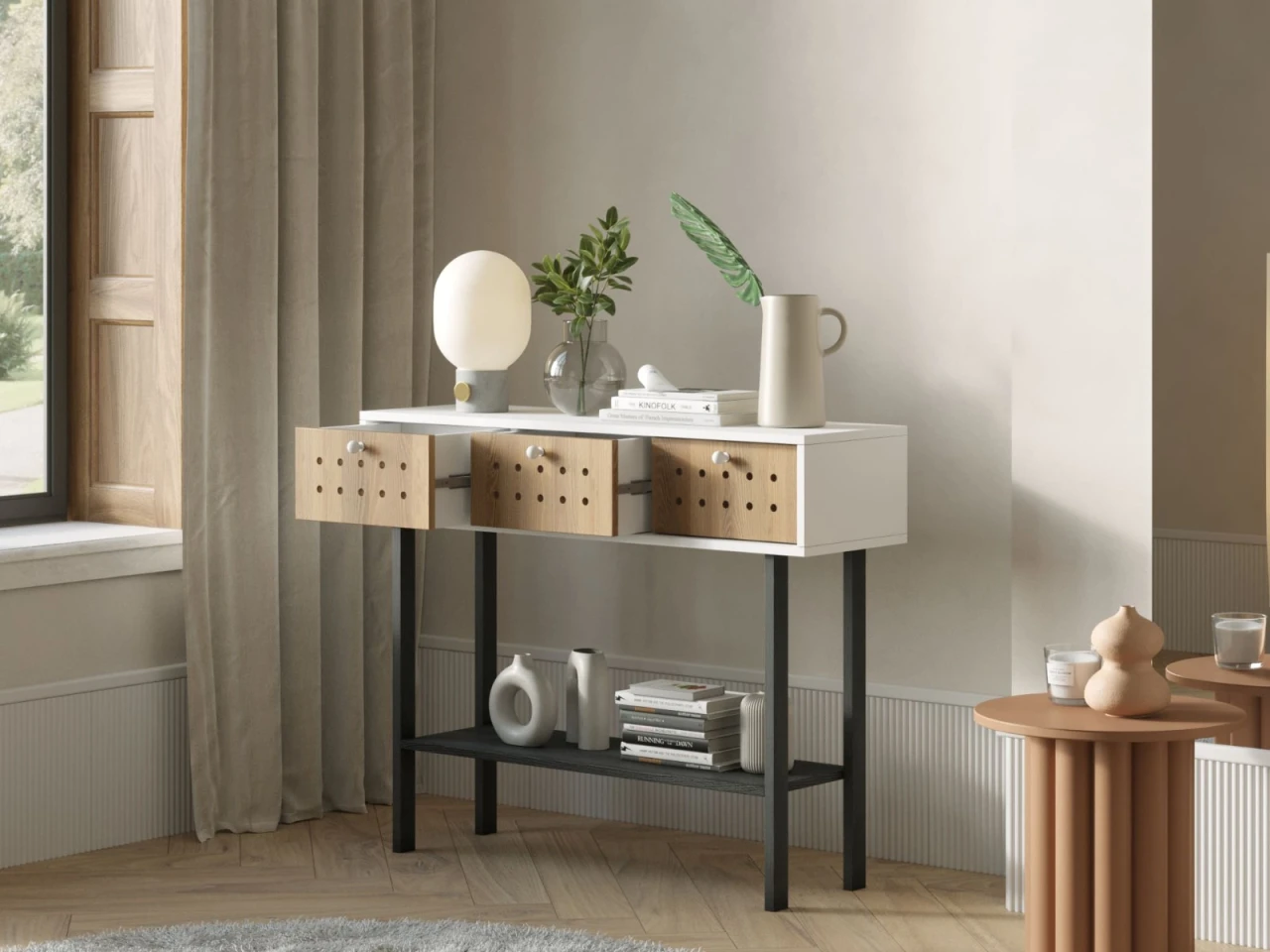 Эта стильная модель не подвержена влиянию моды. Она будет актуальна как через год, так и через пять лет. Консоль высокая KOTO гармонично сочетает в себе уют, удобство и красоту, преображая пространство вокруг.