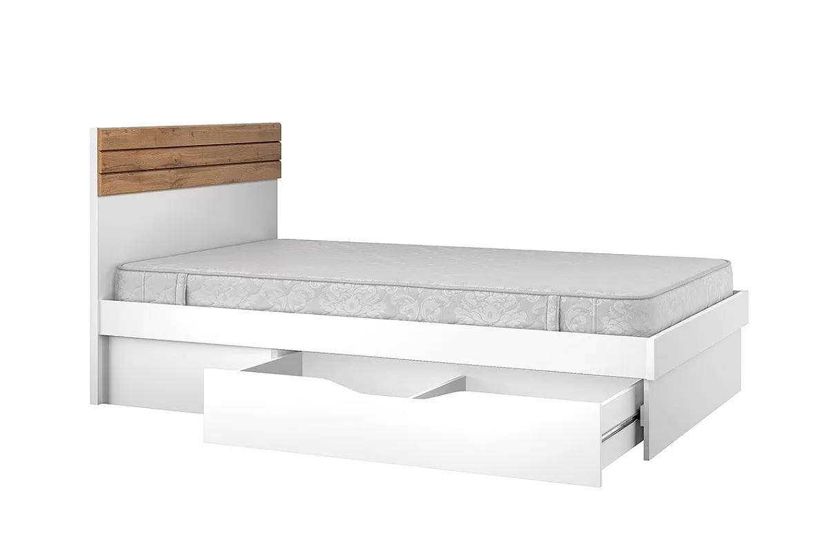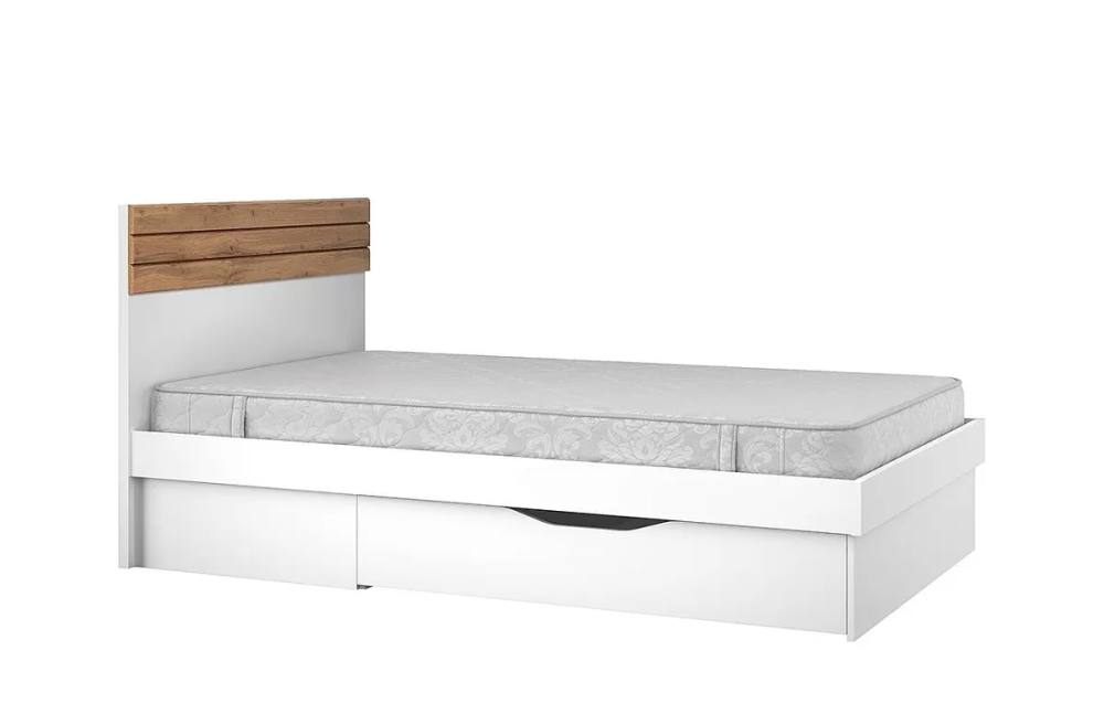 В отделке кровати Taurus 120S прослеживается простота и сдержанность. Ее нейтральный белый цвет с коричневой полосой на спинке под дуб вотан подходит любому интерьеру и спальне современного стиля. Модель привлекает компактностью и функциональностью. Занимая небольшую площадь в комнате, она замещает сразу два предмета интерьера и создает удобства в помещении с любой планировкой.