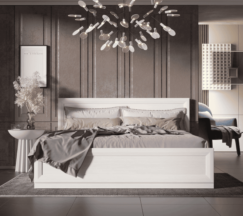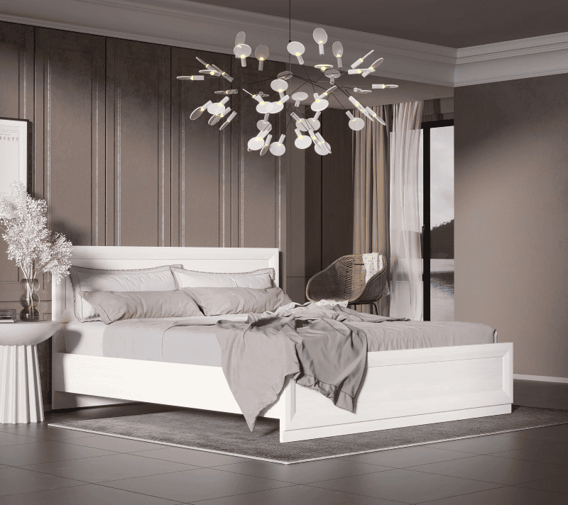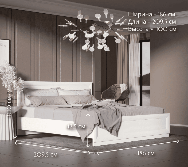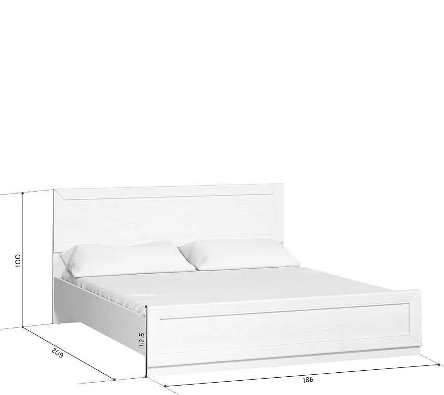 Каркас кровати Malta 180х200 изготовлен из ЛДСП, при отделке фасада использован плитный материал МДФ. Модель имеет устойчивую, надежную конструкцию и укомплектована пластиковыми ножками. Она отлично смотрится на фоне темных стен и светлой отделки, особенно в комплекте с прикроватными тумбами, шкафом и другой мебелью из коллекции «Мальта».