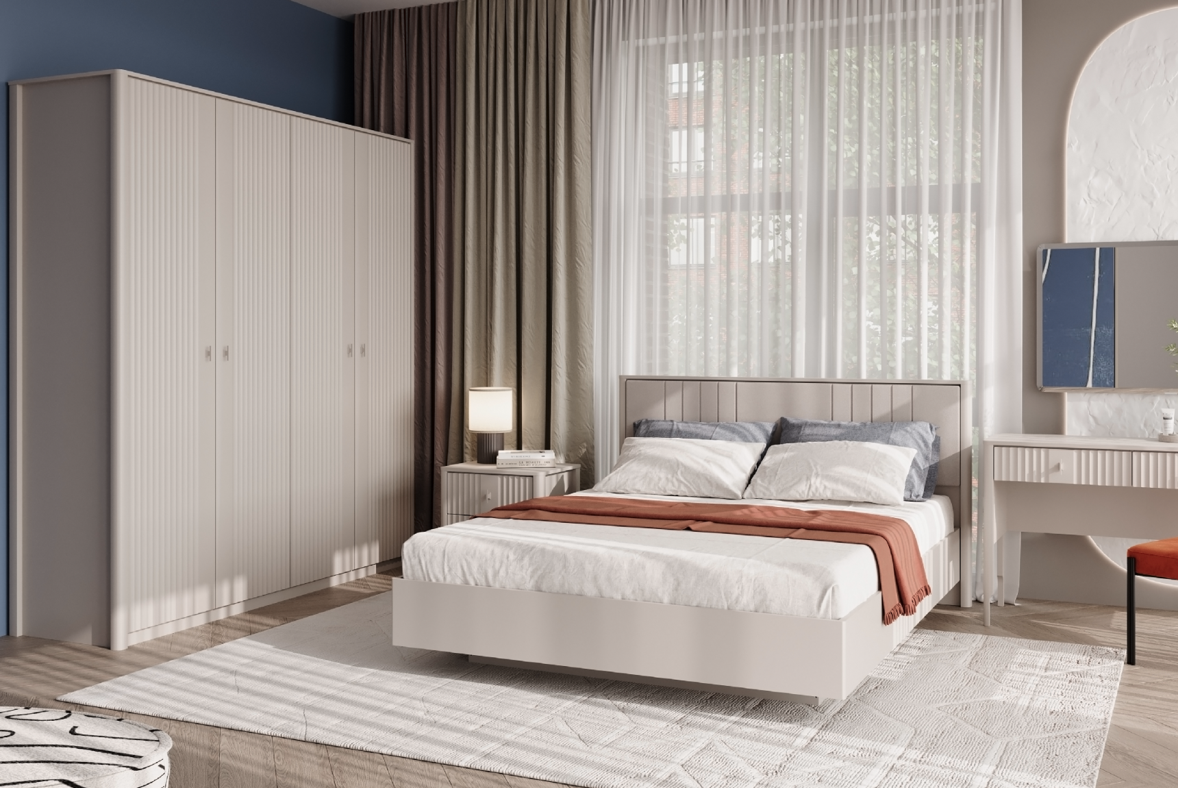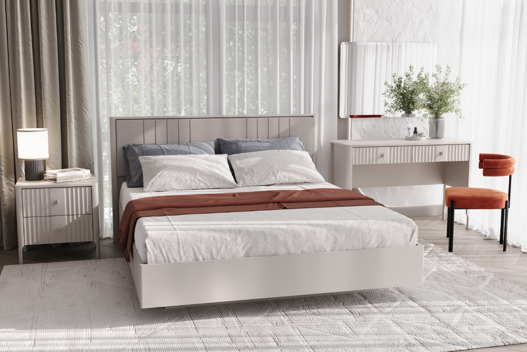 - универсальность — нейтральный дизайн и распространённый размер (160×200 см) позволяют вписать кровать в спальню любой площади и стилистики — от скандинавского минимализма до современного эклектичного интерьера;