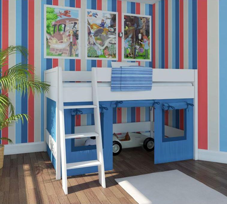 Дополнив нижнюю часть кровати шторками, вы можете организовать оригинальное игровое пространство для малыша.