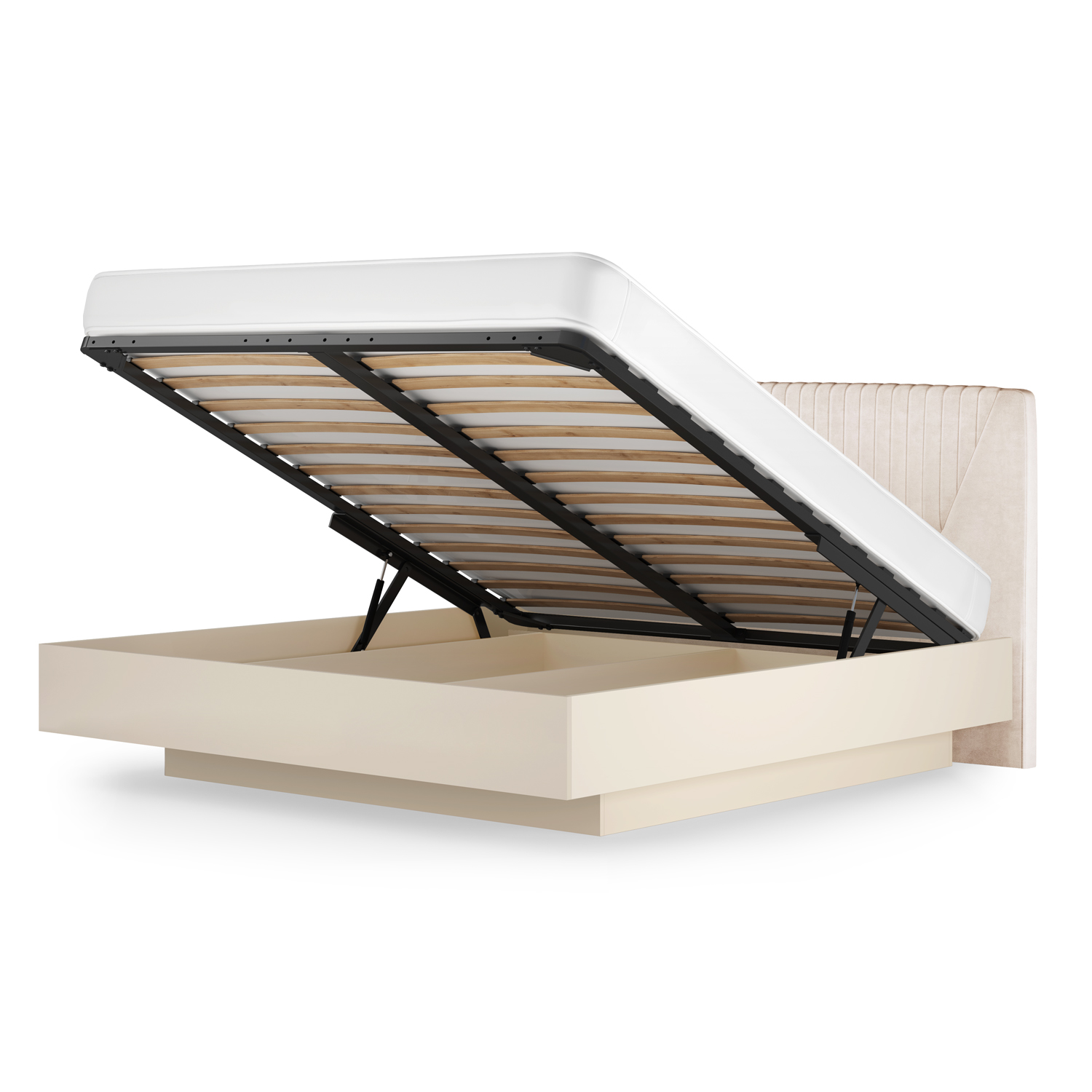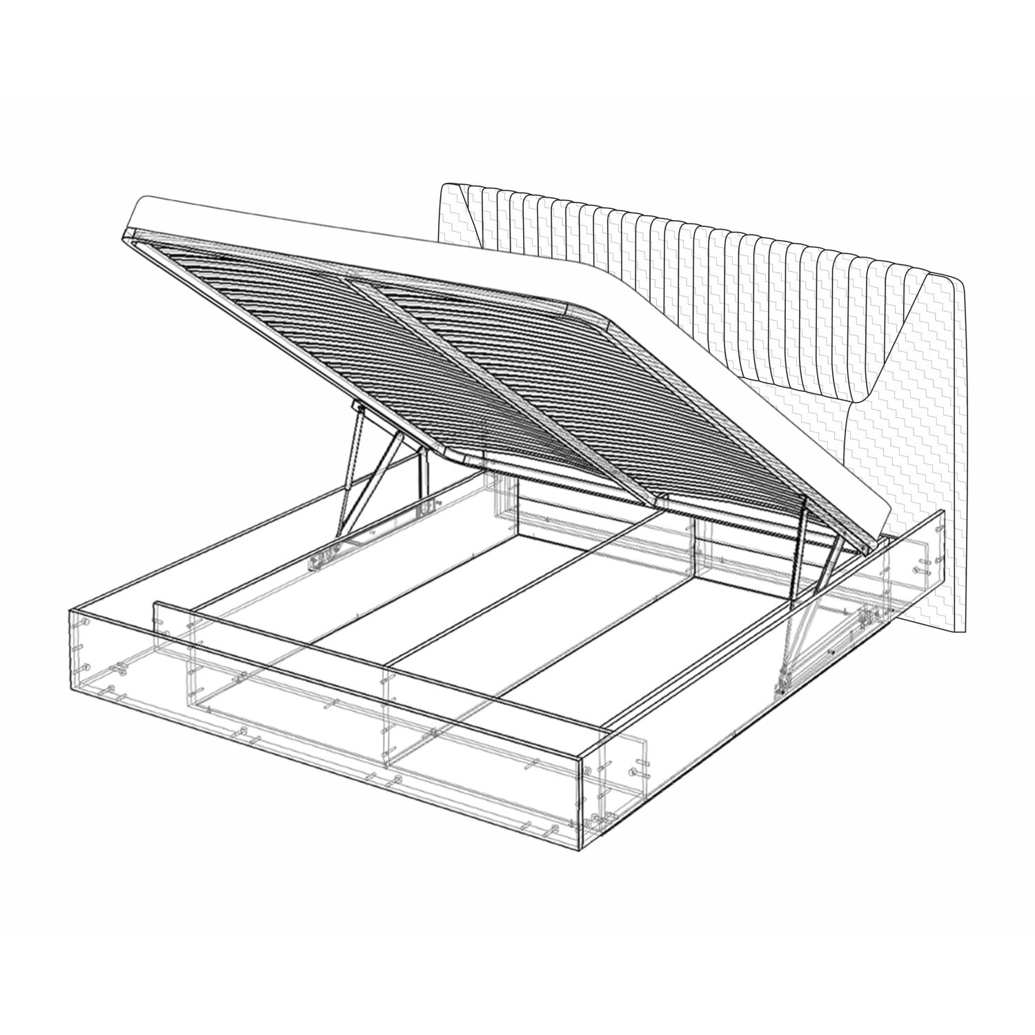 - Удобный механизм подъёма с надёжным газлифтом: достаточно потянуть за петлю, чтобы получить доступ к хранилищу.