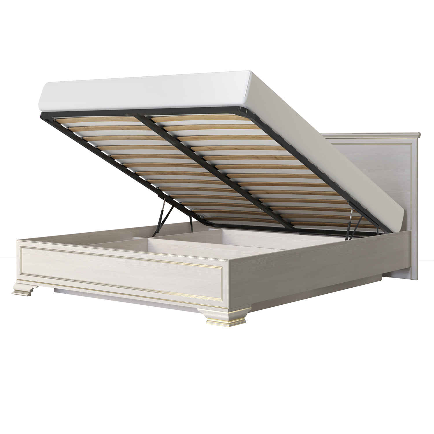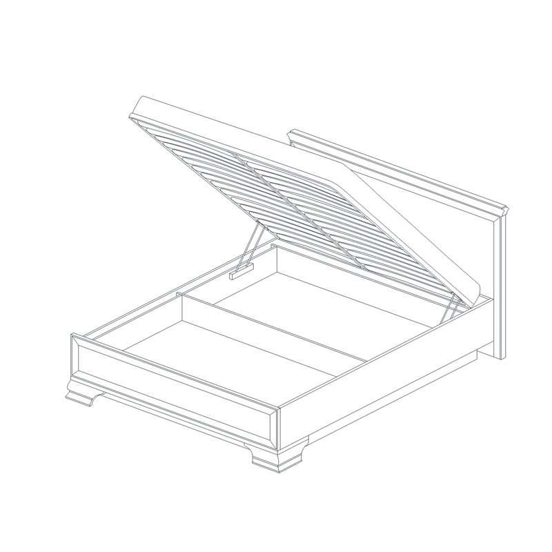 Эта кровать — идеальное решение для компактных пространств. Её главное преимущество — вместительный бельевой ящик, разделённый перегородкой на две секции. Здесь удобно хранить несезонную одежду, обувь и постельные принадлежности. Доступ к отсеку максимально прост: достаточно потянуть за специальную петлю — и основание плавно поднимется благодаря надёжному газлифту.