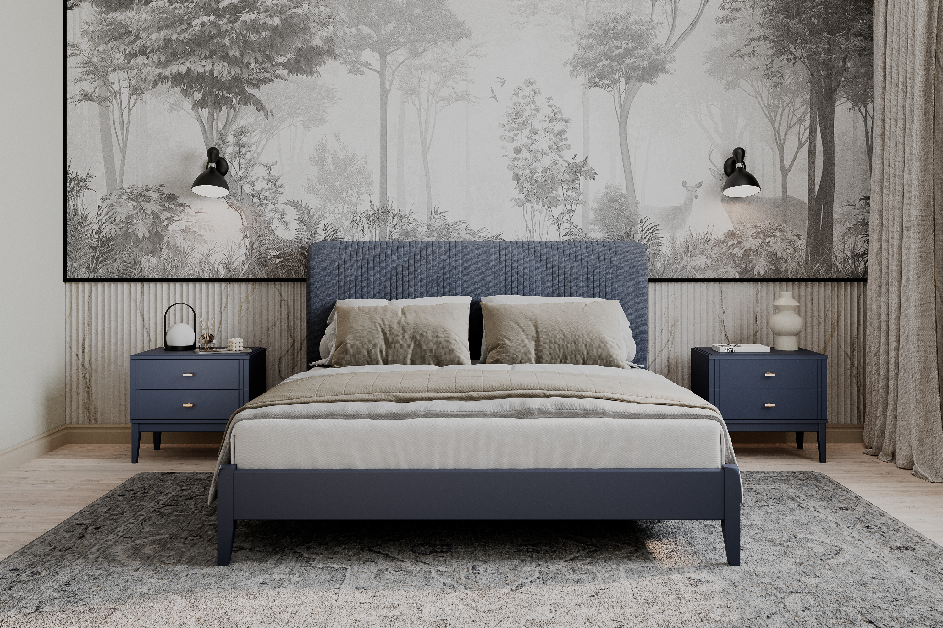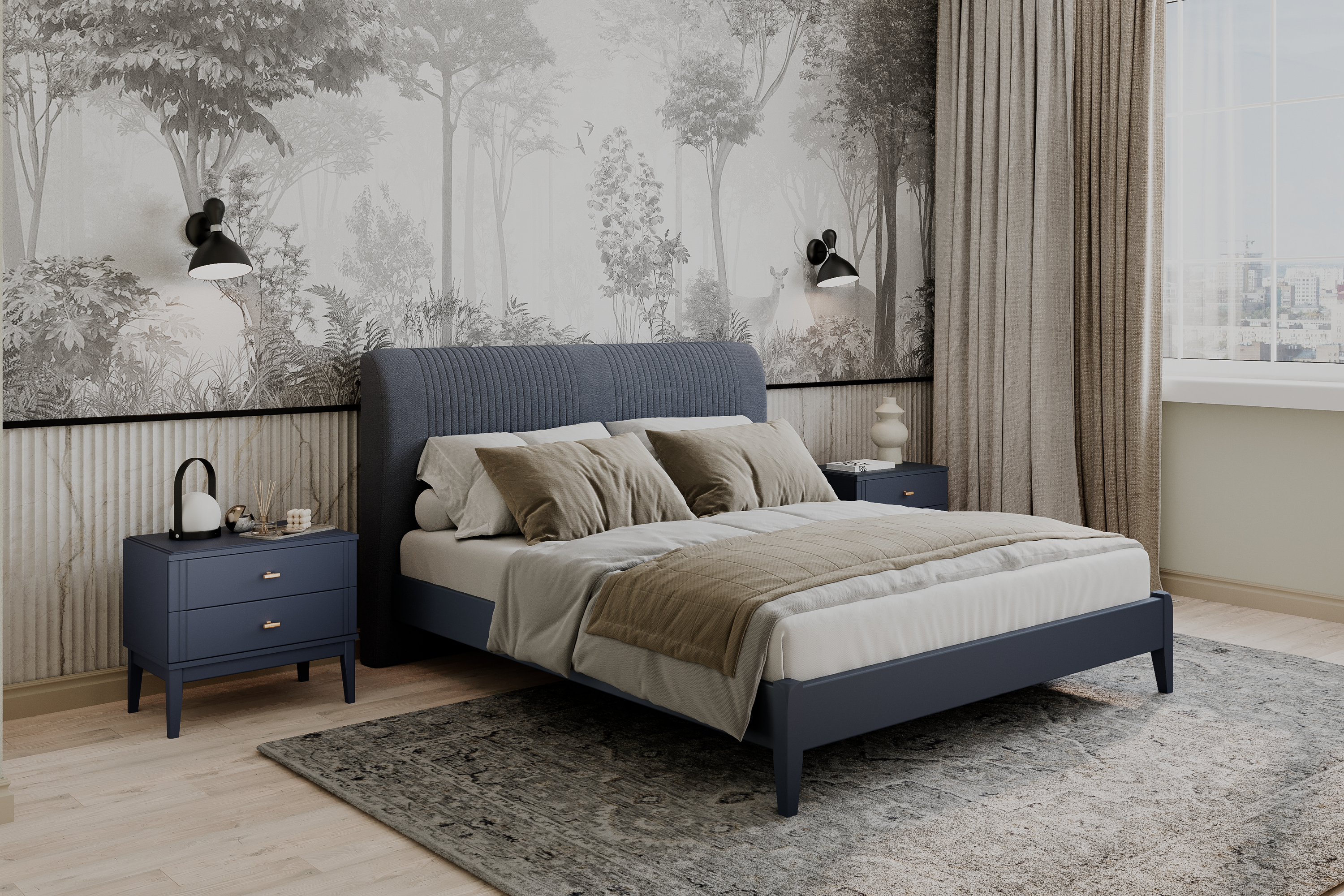 - Декоративная отстрочка — тонкий штрих, который превращает кровать в выразительный элемент дизайна.