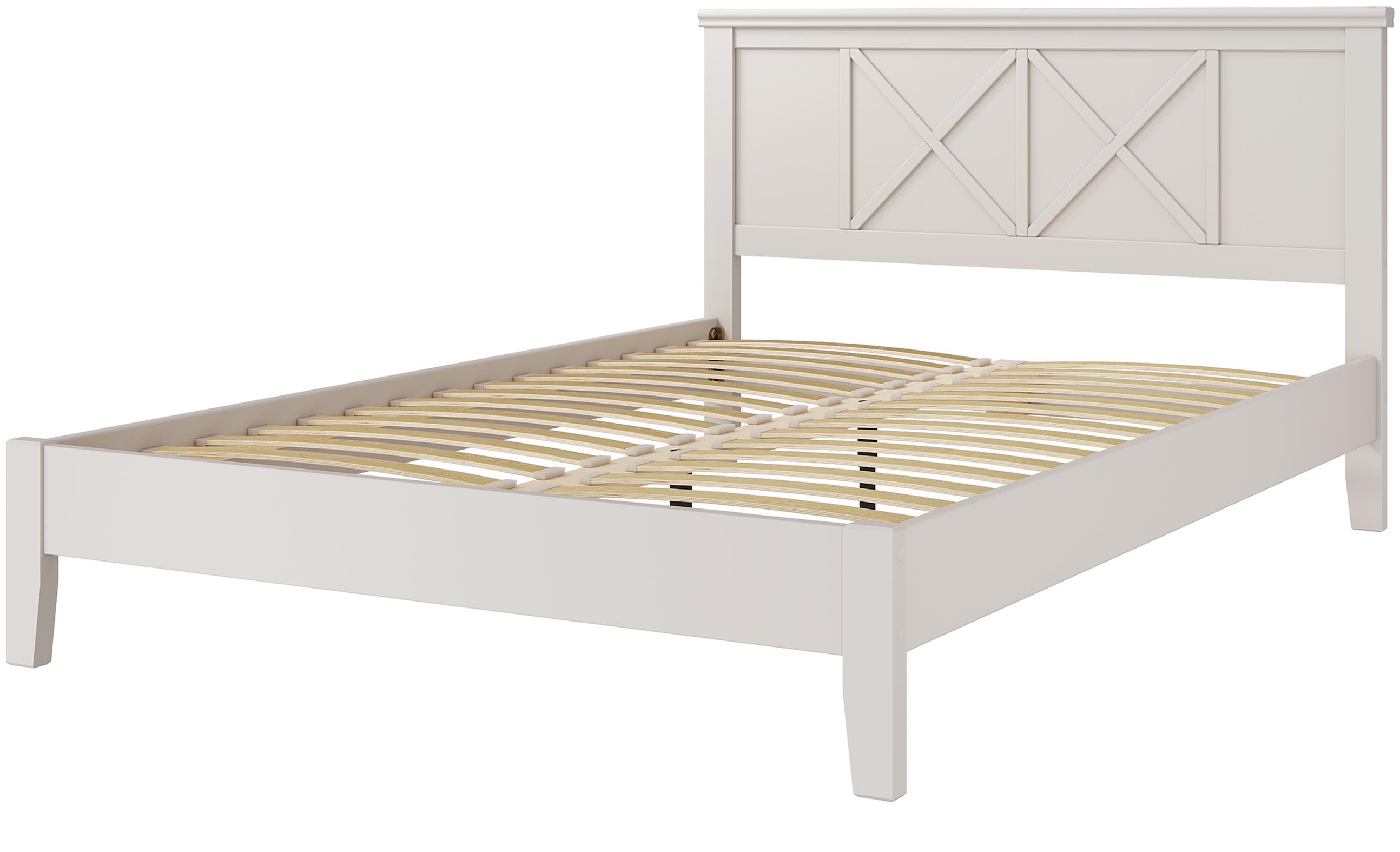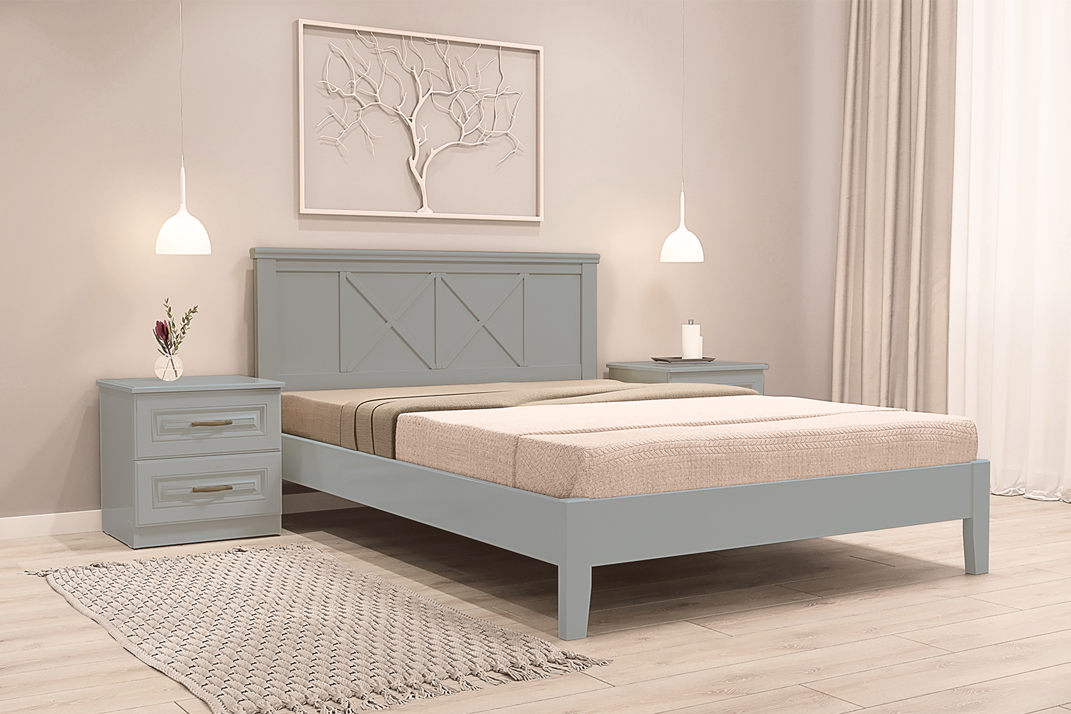 Кровать Грация-2 состоит из следующих частей: головная спинка, ножная спинка и две двухметровые деревянные царги.