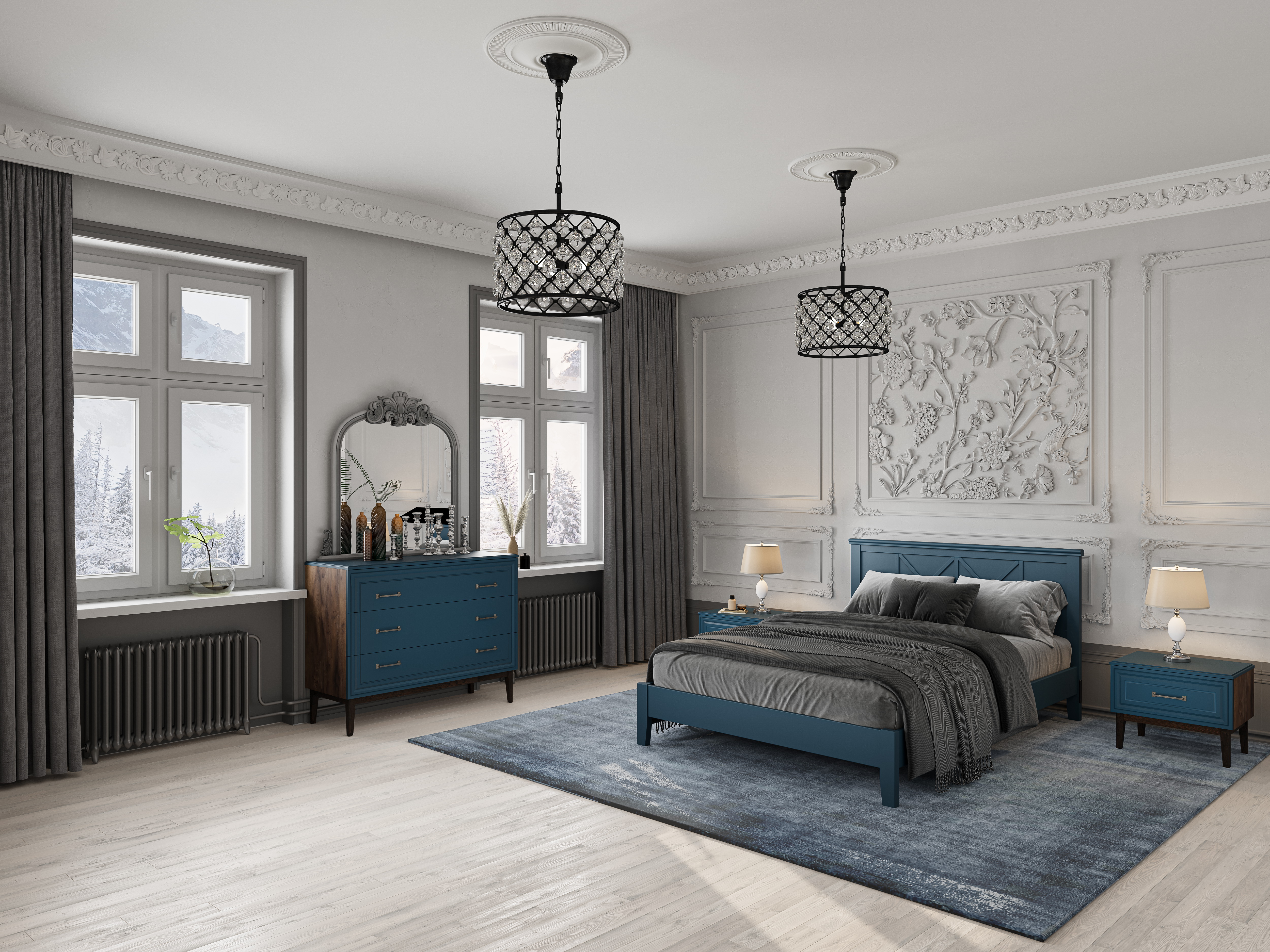 Ее дизайн сочетает в себе классические и современные элементы, что делает ее универсальным решением для спальни.