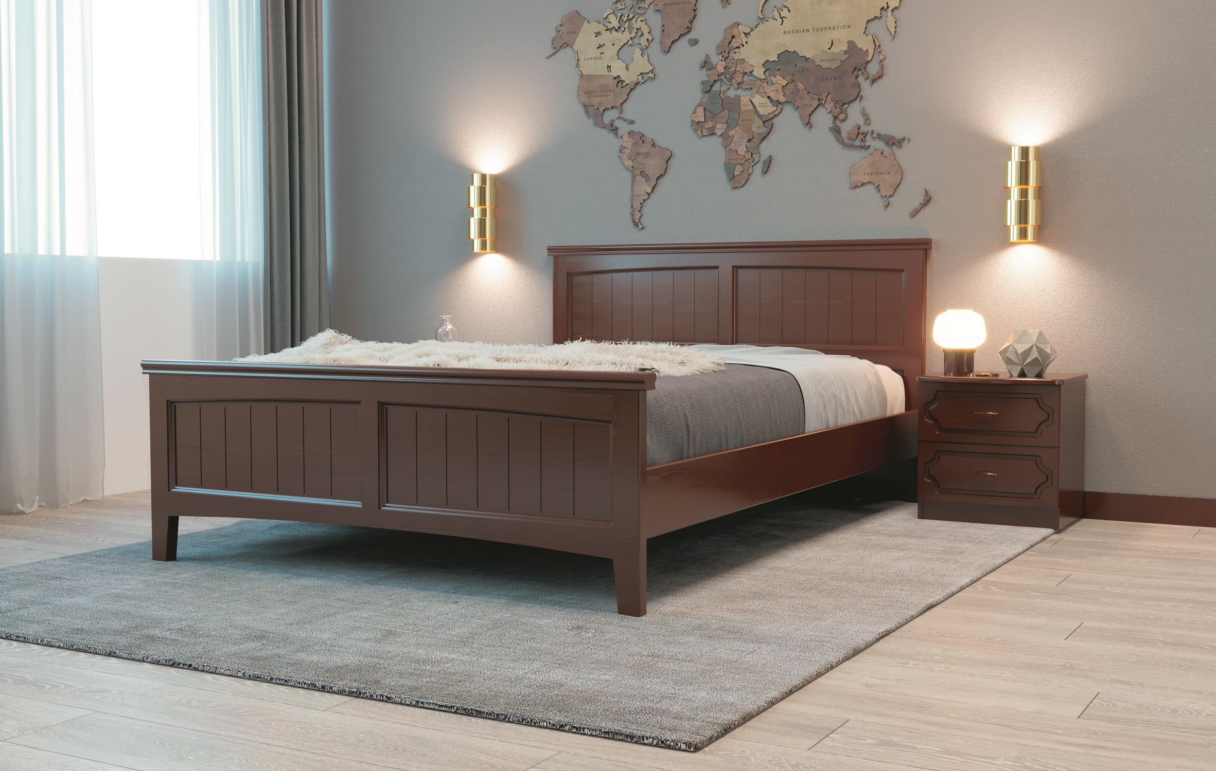 Кровать изготовлена по технологии сращивания массива.