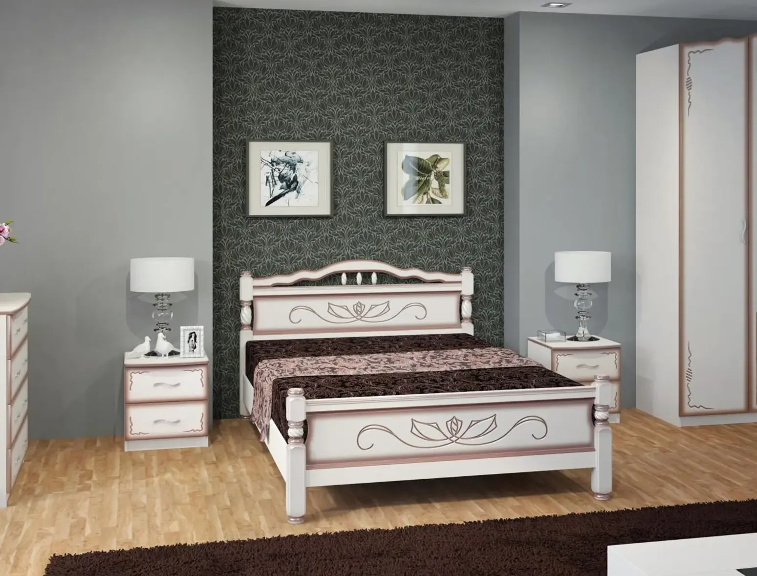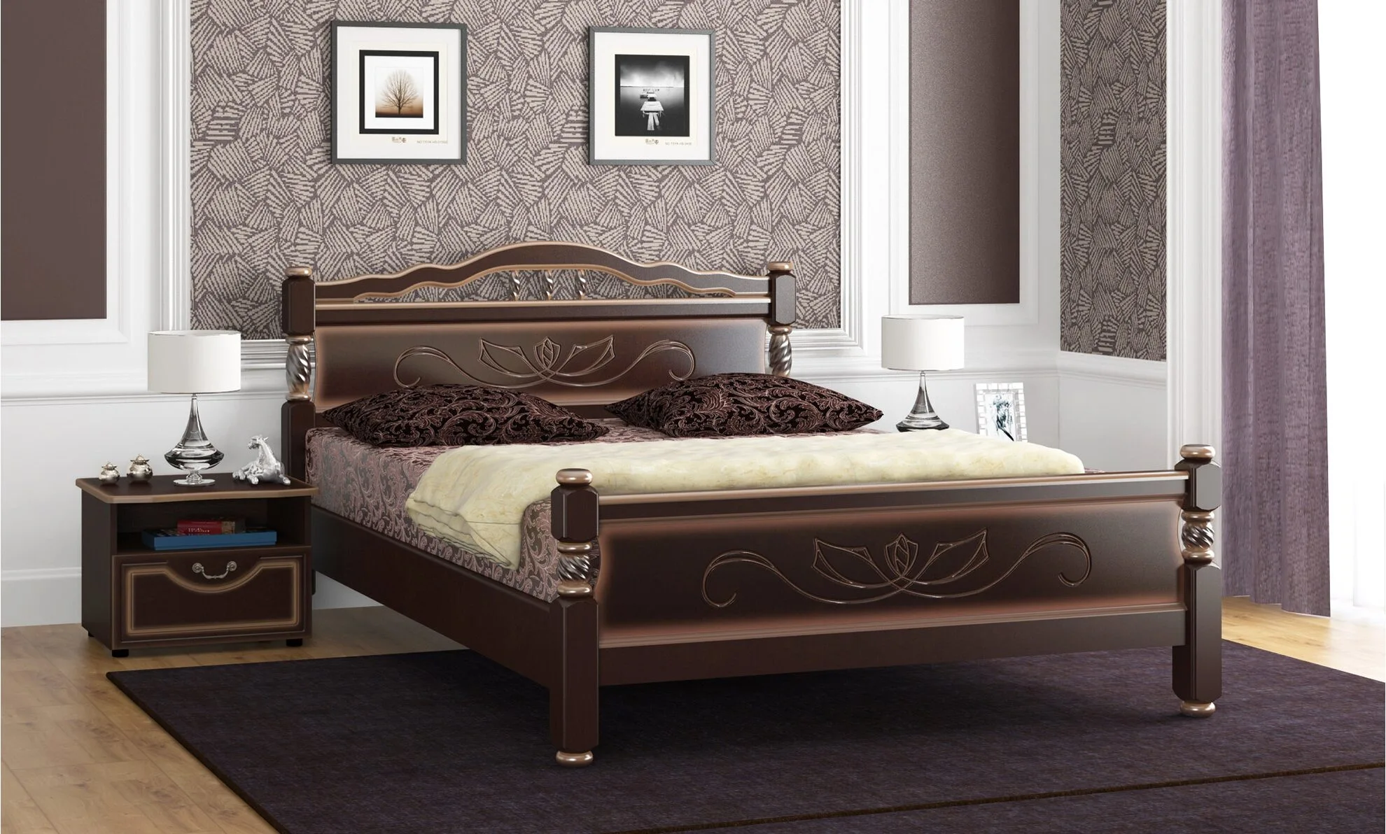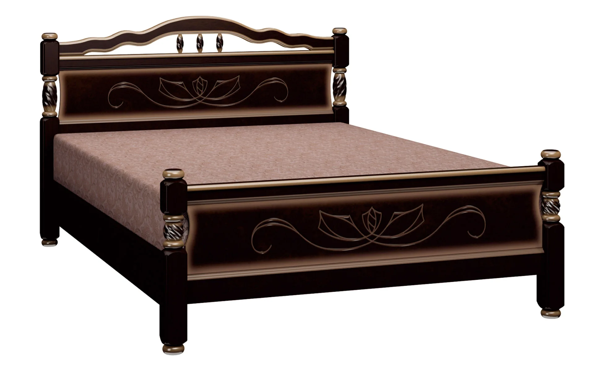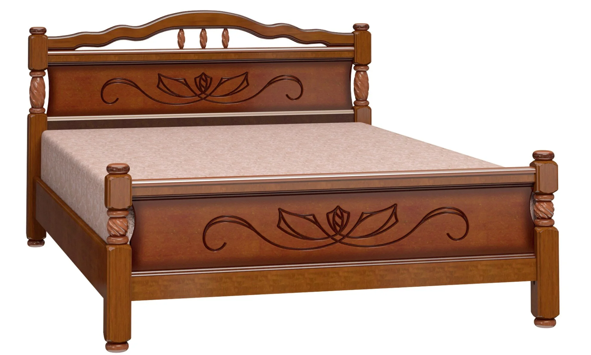 Вставки с узором в центре изголовья и изножья изготовлены из МДФ и выполняют сразу две функции: