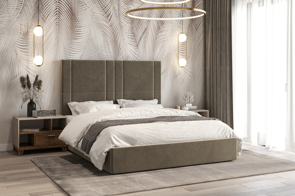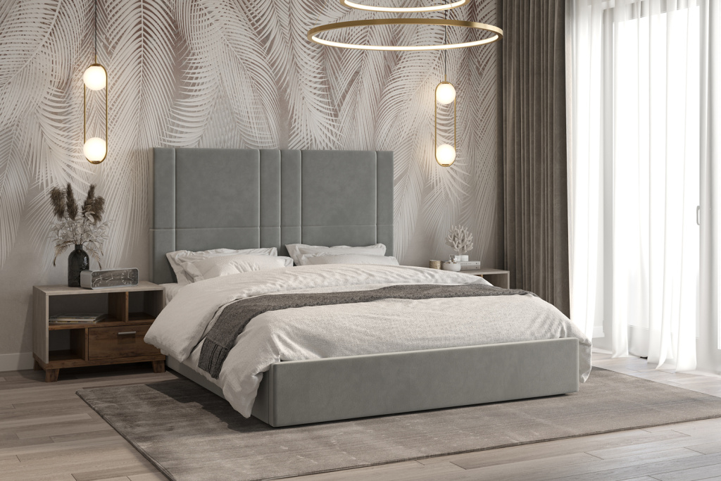 - стильный дизайн — стёжкография придаёт изголовью утончённость, а плавные линии формируют современный образ кровати;