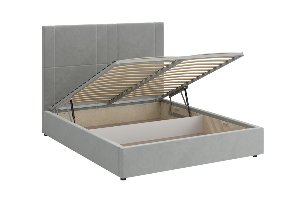 - дополнительное хранение — в варианте с подъёмным механизмом предусмотрен вместительный ящик для белья, что позволяет рационально использовать пространство спальни;