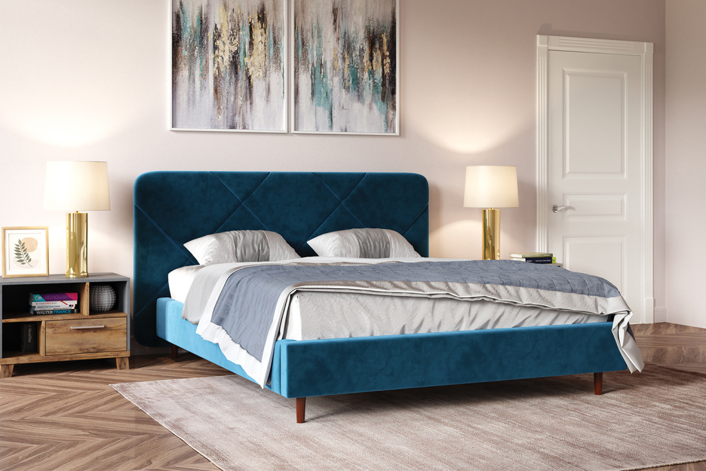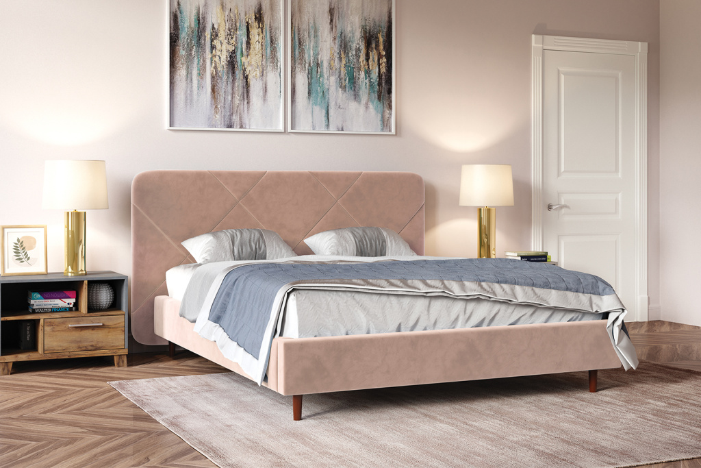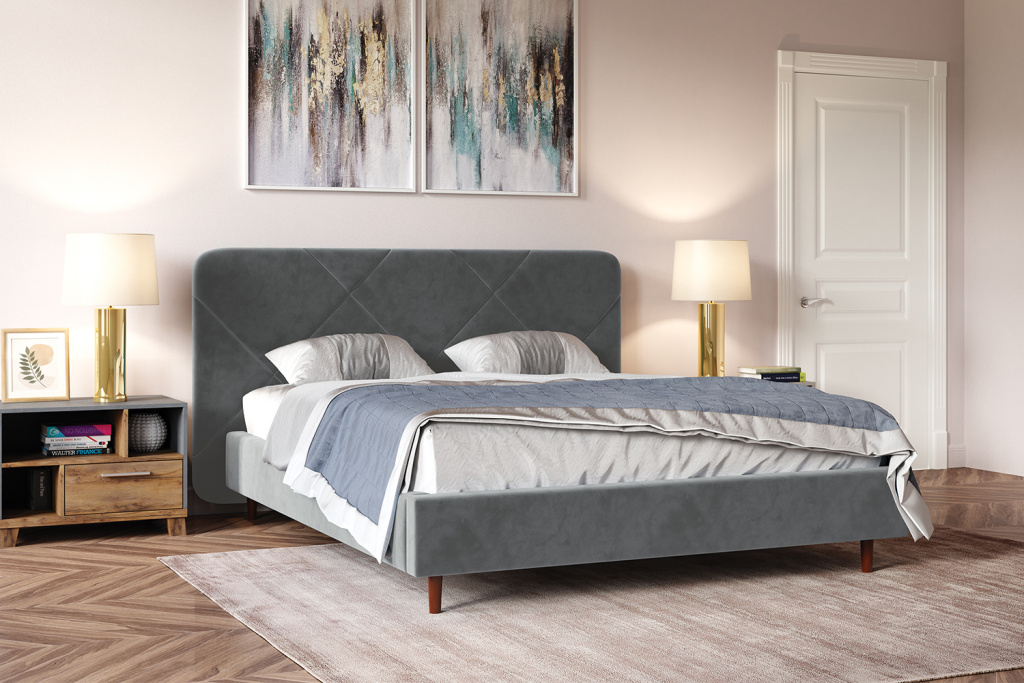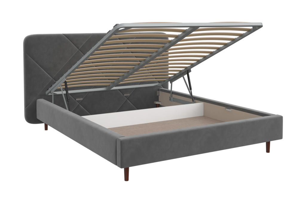 Визуальной лёгкости модели придают ножки-опоры из массива, которые приподнимают кровать от пола на 14 см.