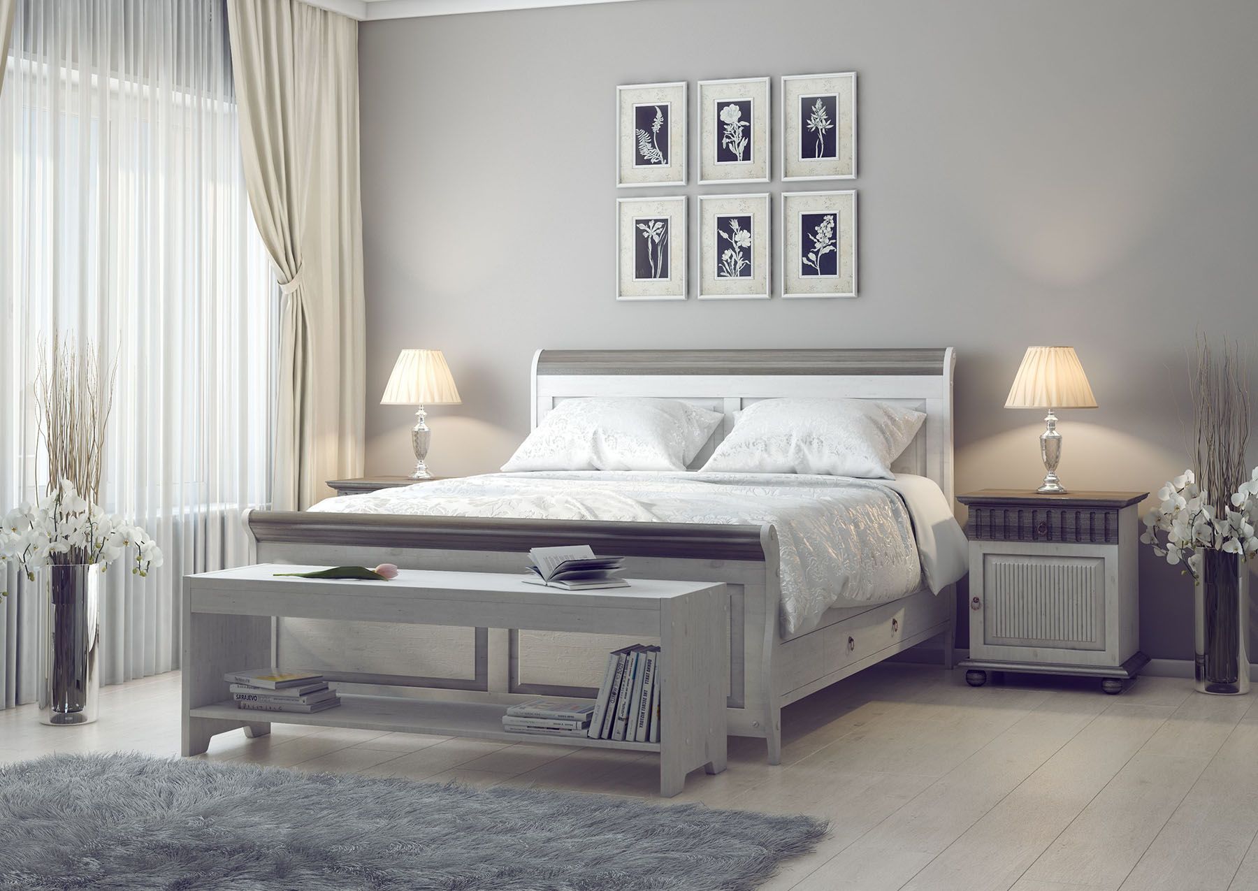 Во сне люди проводят треть жизни. Поэтому для изготовления мебели для спальни используются малотоксичные материалы. Так, поверхности этой модели обработаны водными лаками и красками. Они не имеют неприятного запаха, не выделяют вредных испарений. При этом надежно берегут изделие от повышенной влажности и другого воздействия внешней среды.