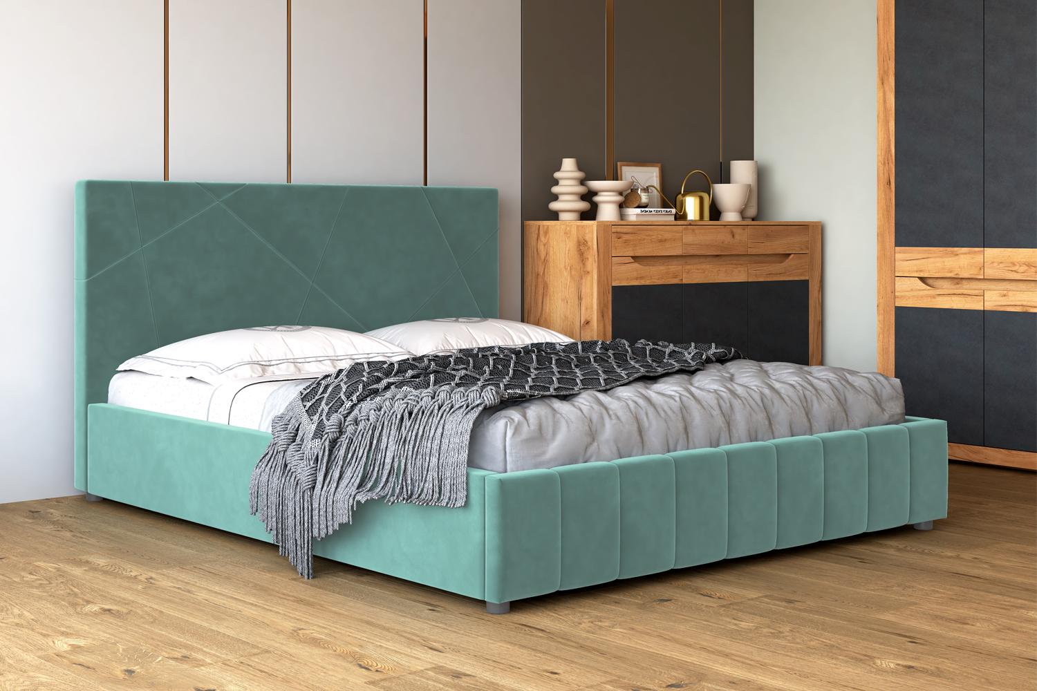 Ее геометрический узор на спинке и изножье придает декору строгости и лаконичности, а мягкая обивка - стиля и роскоши.
