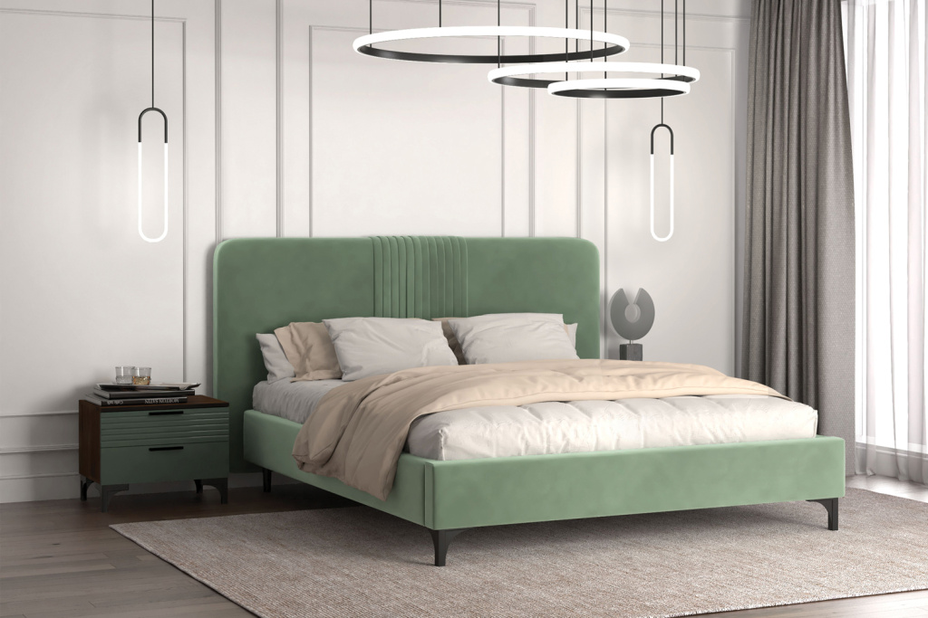 - стильные металлические ножки — не только украшают кровать, но и обеспечивают её устойчивость, подчёркивая современный характер модели;
