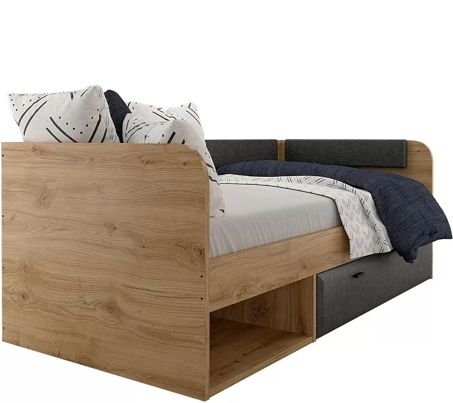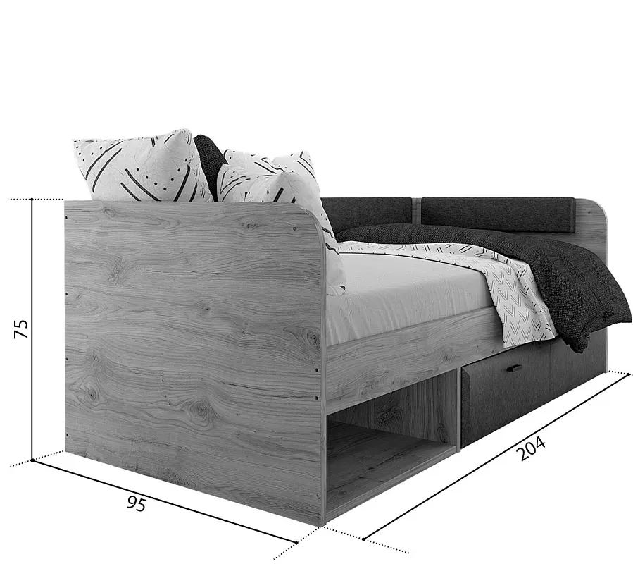 Кровать 90х200 см Grace из ЛДСП относится к современному стилю и органично вписывается в обстановку комнаты школьника и подростка. Также на ней может с комфортом разместиться взрослый человек нормальной комплекции. Модель гармонична, надежна и экологична.