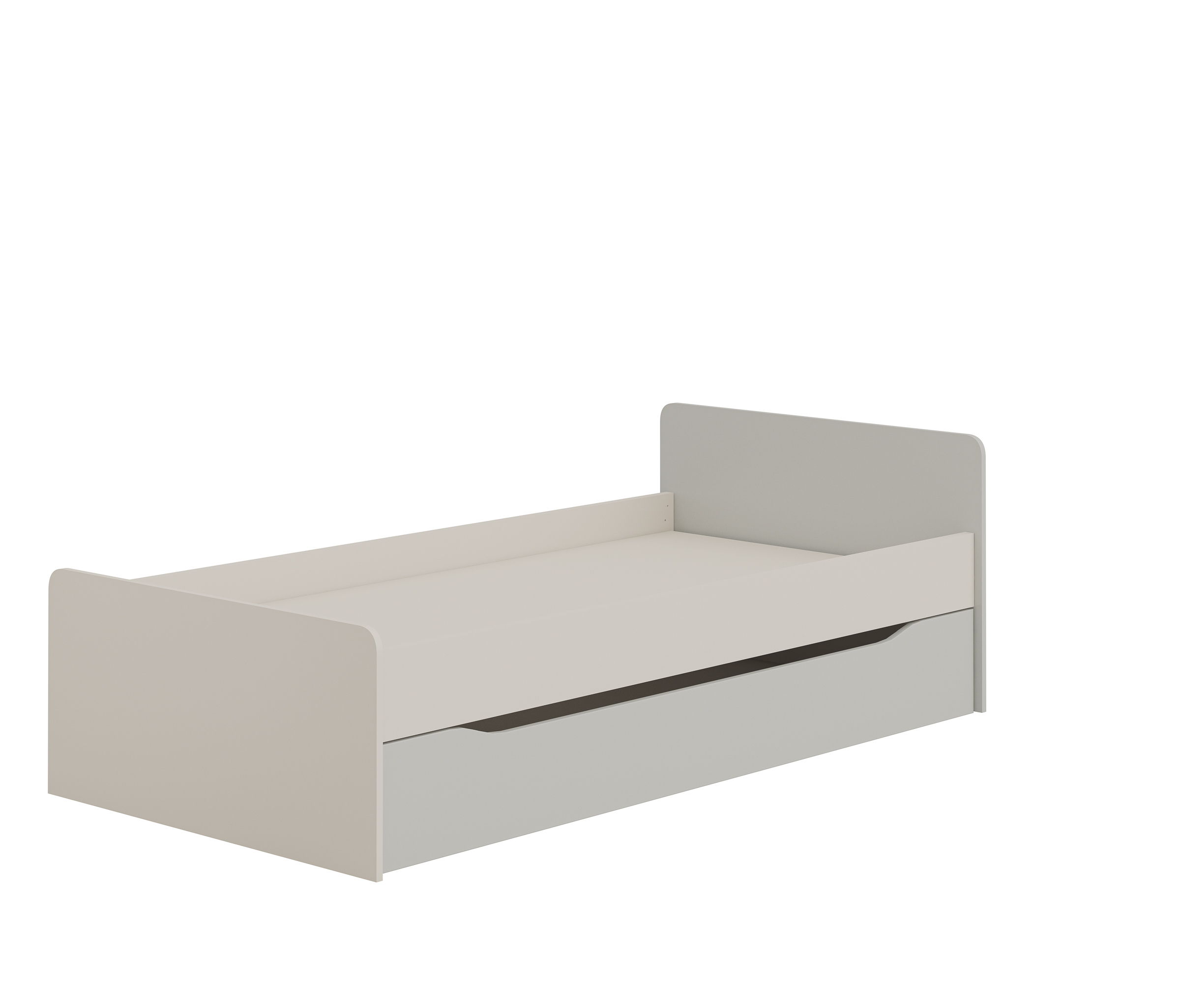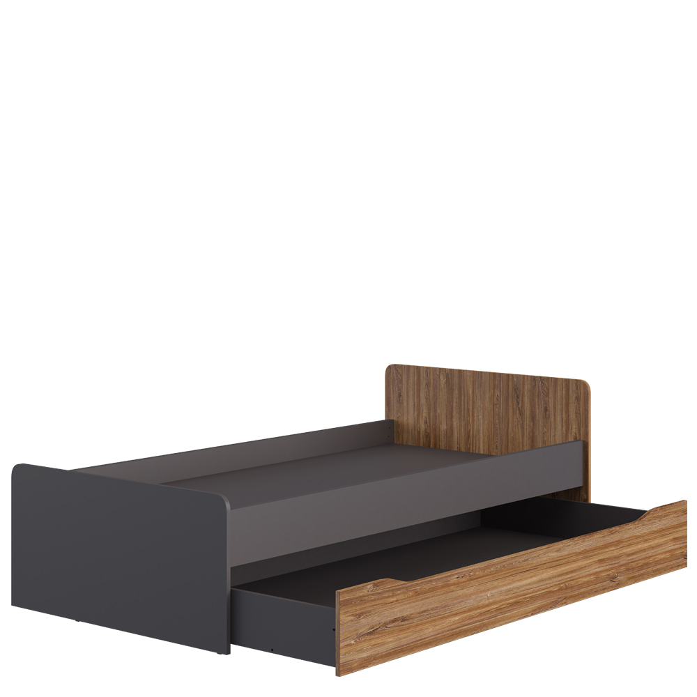 Кровать МН-135-29 с одним большим выкатным ящиком, который можно использовать как дополнительное спальное место либо ящик для хранения. Размер основного спального места 200*90,