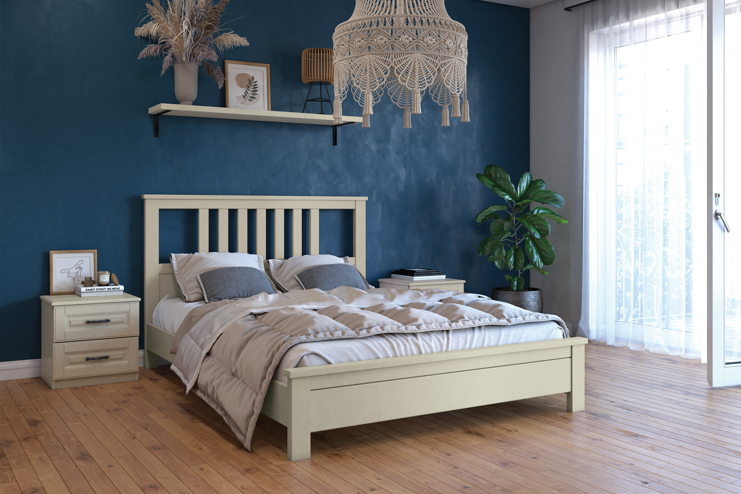 Кровать отлично подойдет для лаконичных спален, с минималистичным дизайном, в скандинавском стиле.