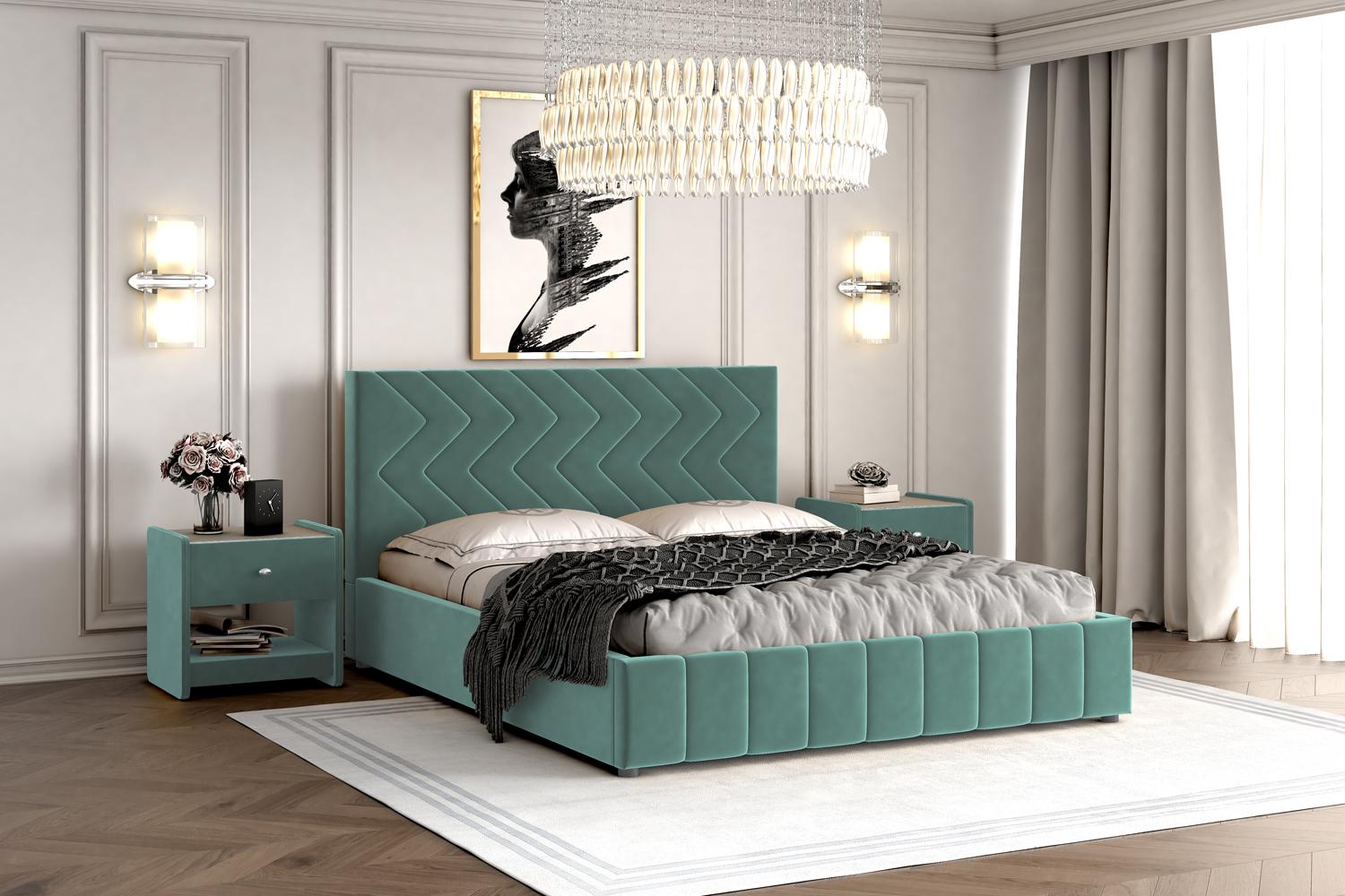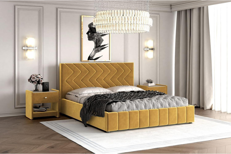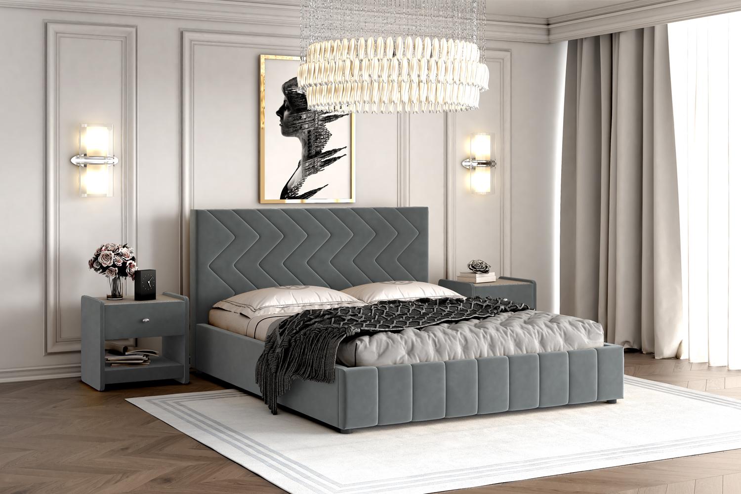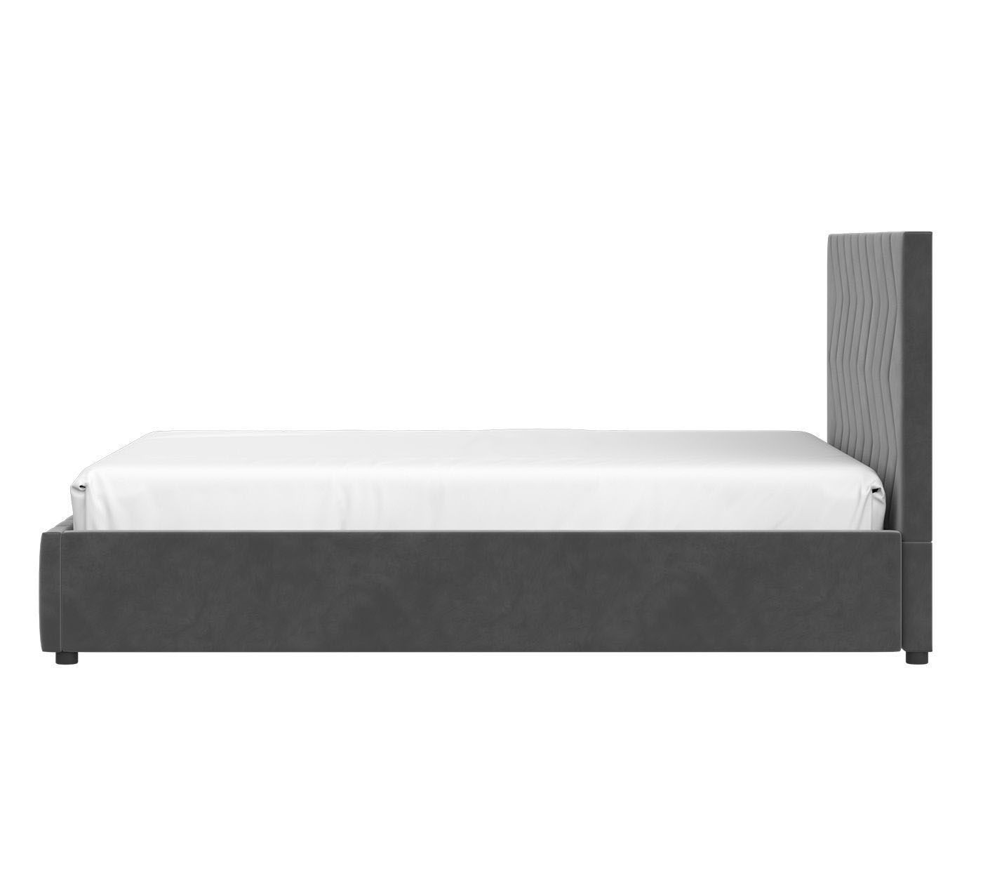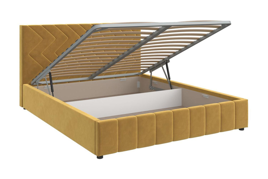 Интерьерная кровать Нельсон комплектуется металлокаркасом и дополнительно может быть оснащена подъемным механизмом с газовым амортизатором (газлифтом).