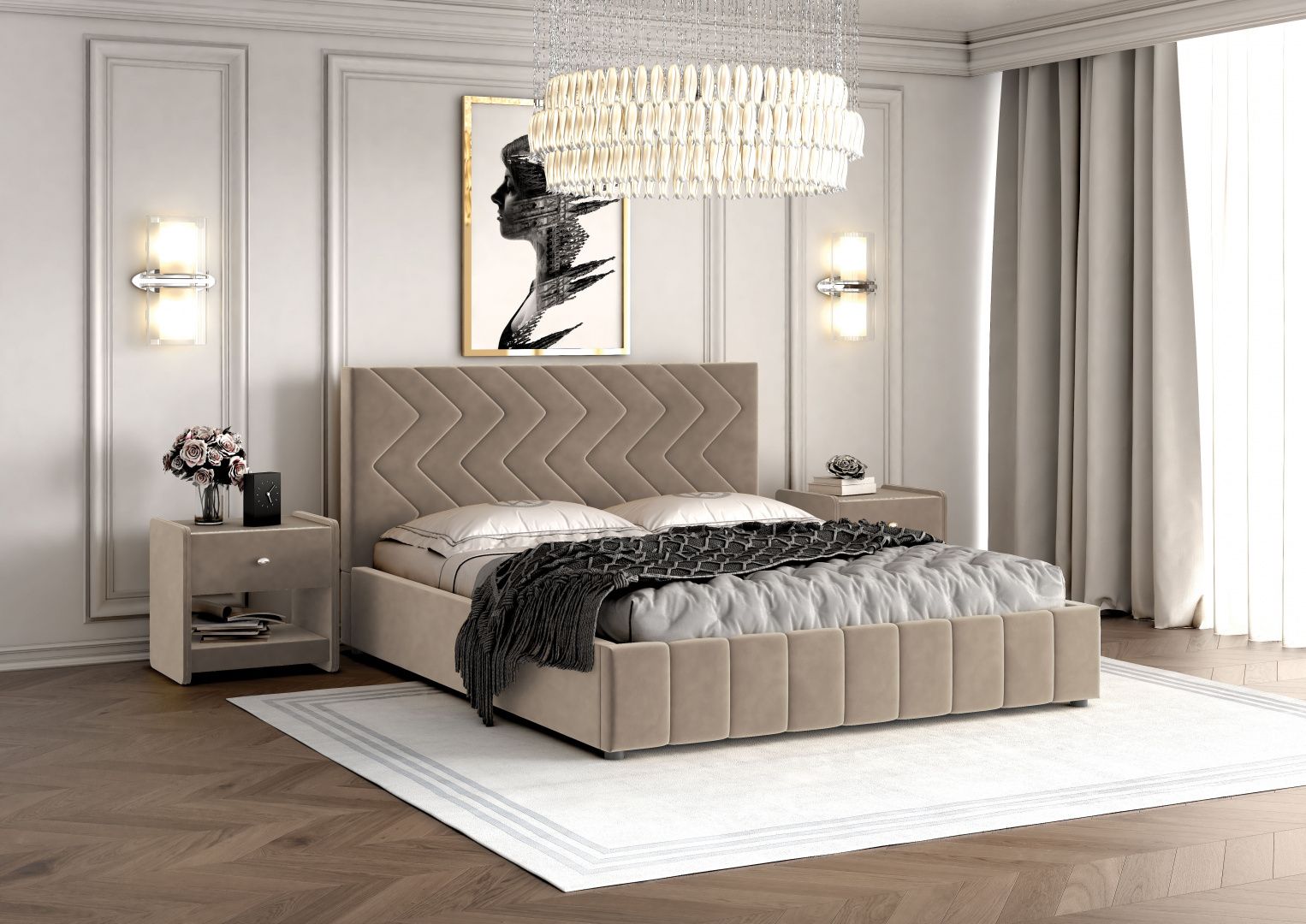Двуспальные мягкие кровати БРАВОмебель имеют надежный каркас из МДФ, фанеры и ЛДСП.