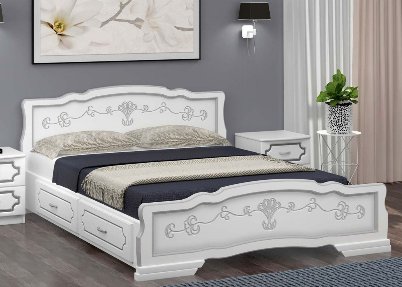 В центре изголовья и изножья имеются вставки с узором. Вставки изготовлены из МДФ.