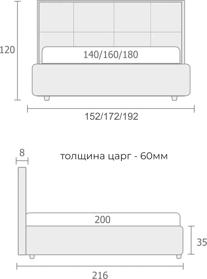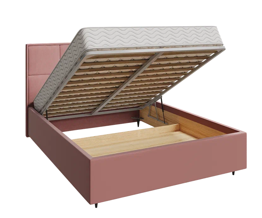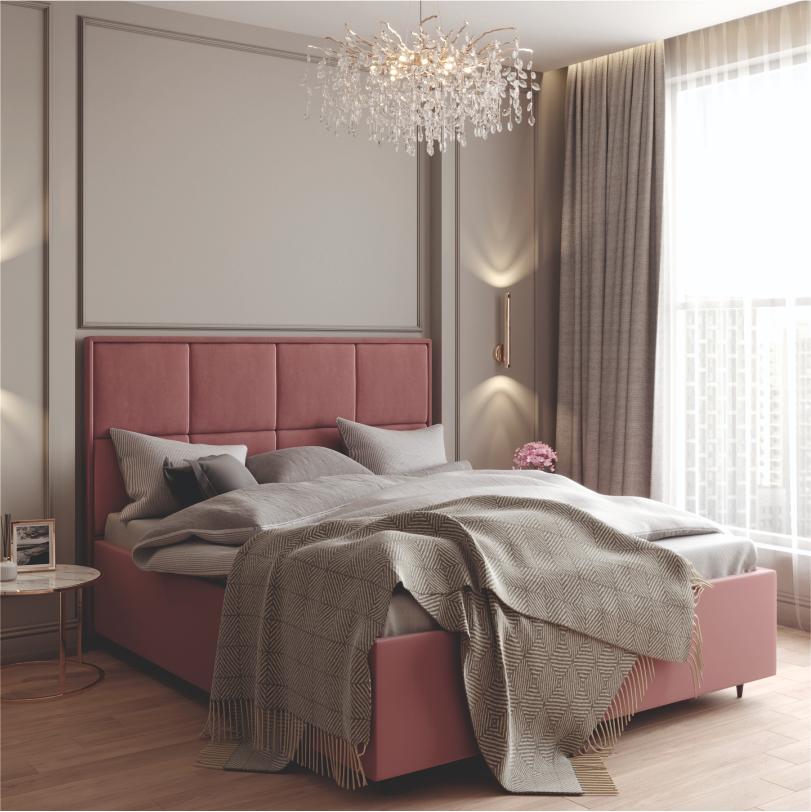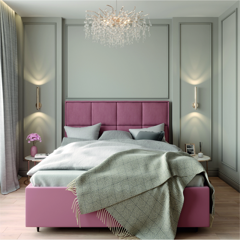 Кровать может быть выполнена в различных вариантах отделки: гладкой экокоже, бархатистом велюре или мягкой рогожке.