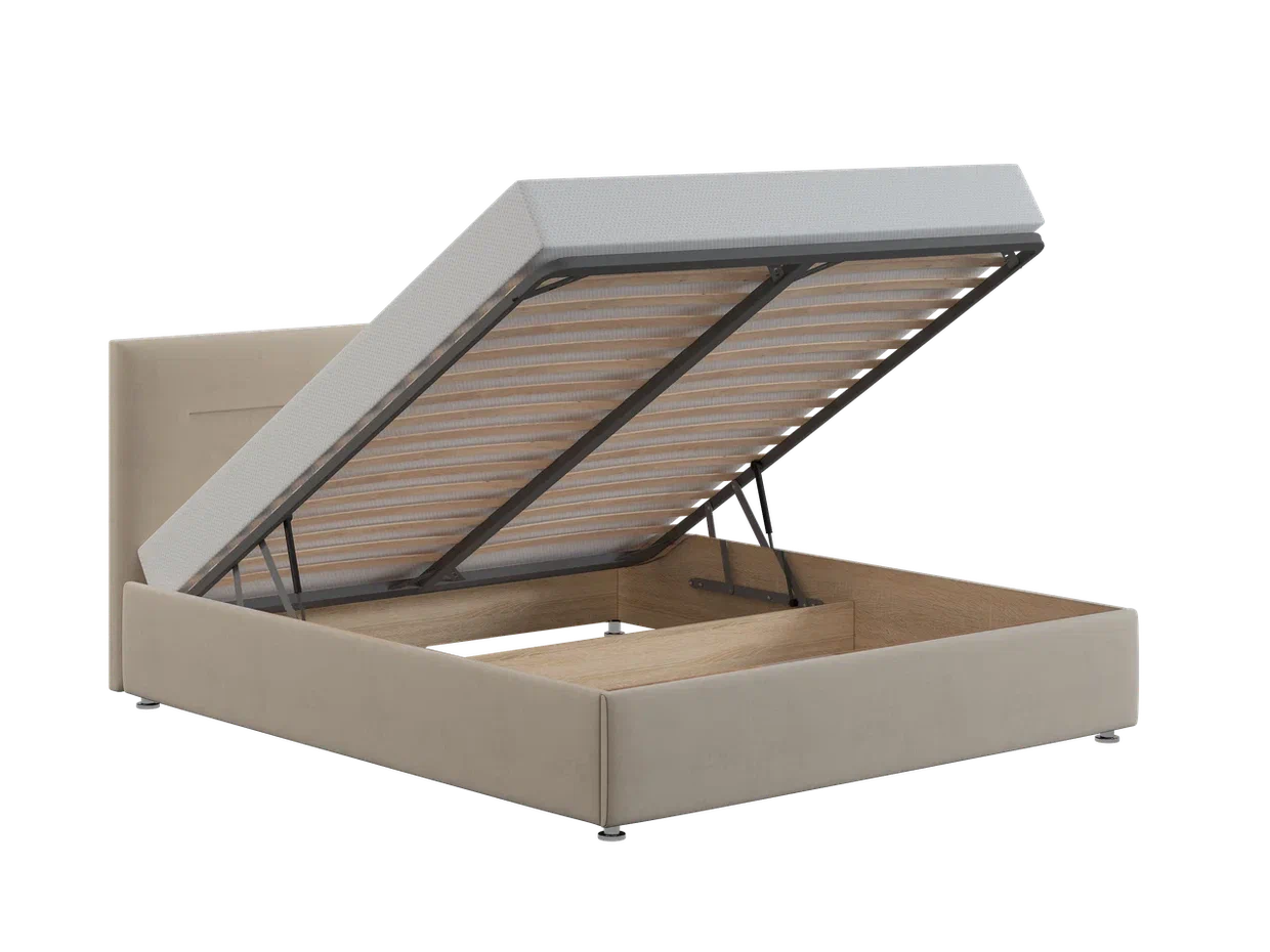 Обратите внимание, матрас в комплект не входит. Дно бельевого ящика предусмотрено на половину площади кровати.