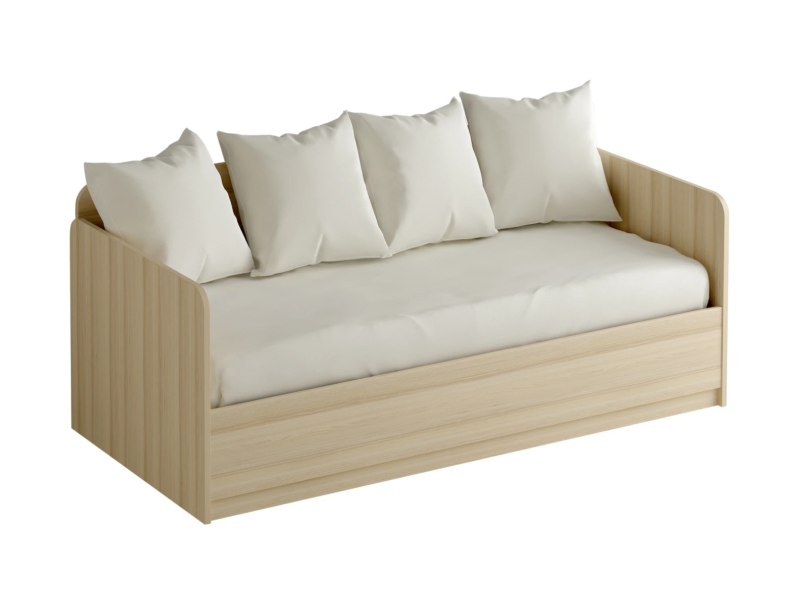 Кровать односпальная с подъёмным механизмом. Под спальным местом располагается ящик для хранения. Ящик разделён перегородкой на два отделения. Размер спального места – 900x2000 мм. Корректная работа подъёмного механизма пневматического типа обеспечивается при весе матраса от 25 до 40 кг. Декоративные подушки в комплект не входят.