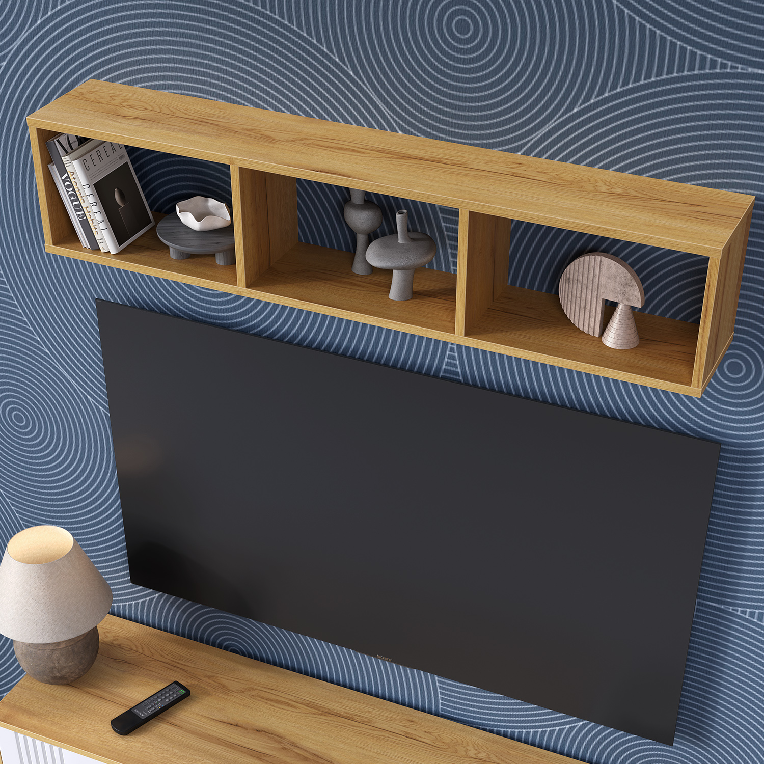 Благодаря продуманной конструкции с перегородками внутреннее пространство грамотно зонировано: можно удобно разместить книги, декоративные предметы или повседневные мелочи, поддерживая порядок без визуального хаоса. Компактные габариты (1200×250×200 мм) позволяют вписать полку даже в небольшое помещение.