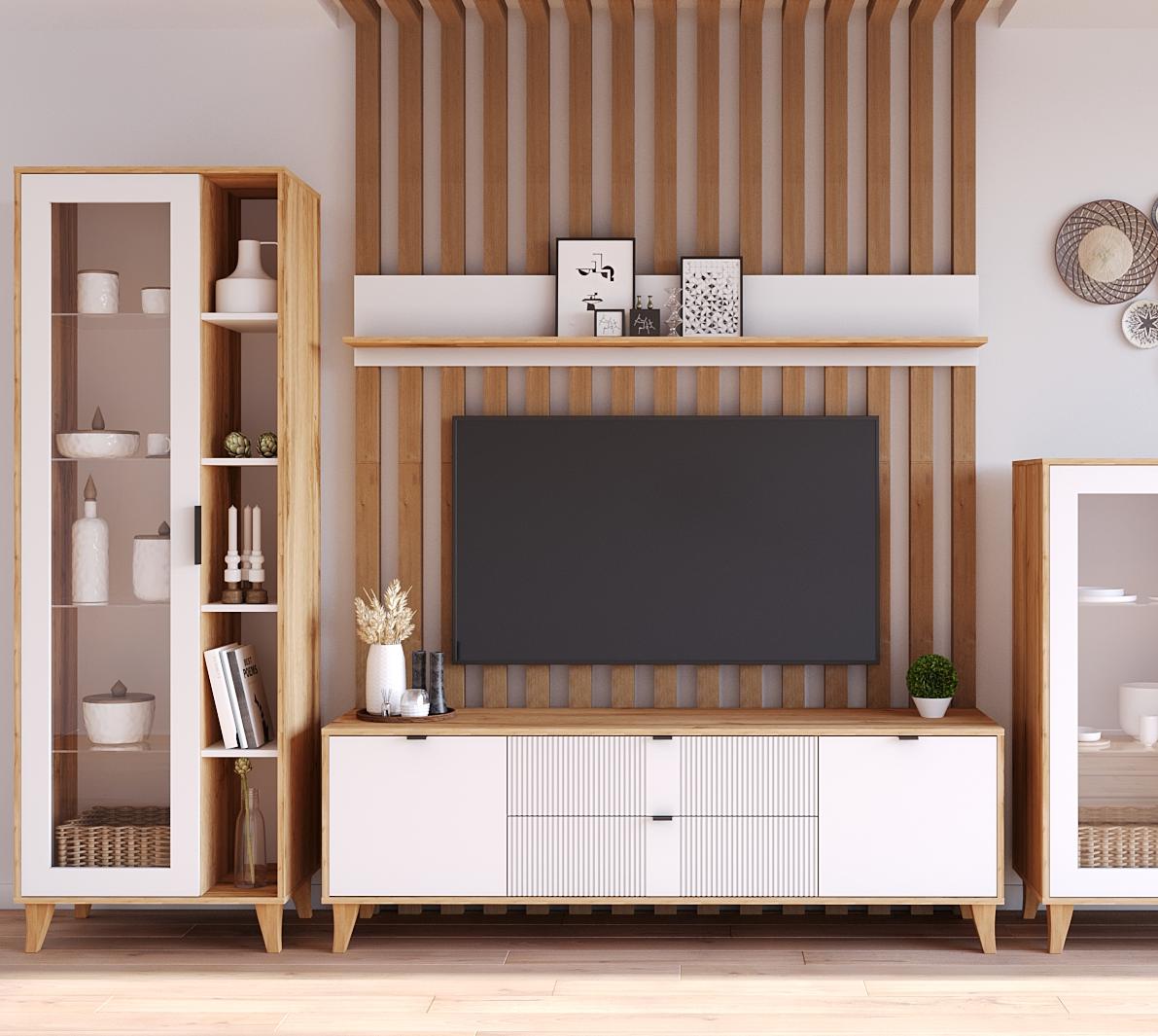 Фрезерованный белый матовый фасад создаёт ощущение лёгкости и свежести, а корпус в оттенке «Дуб вотан» добавляет пространству теплоты и естественности. Строгие прямые линии подчёркивают чистоту скандинавского дизайна, делая полку универсальной: она гармонично впишется как в спальню, так и в гостиную или прихожую.