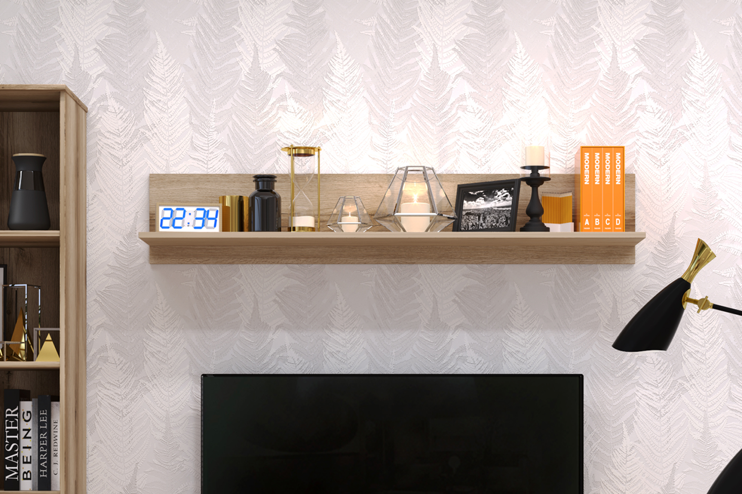 Компактные размеры (в ассортименте — 900 и 1350 мм по ширине) позволяют разместить полку даже в небольшом пространстве, а при желании — скомпоновать несколько модулей в эффектную стенку.