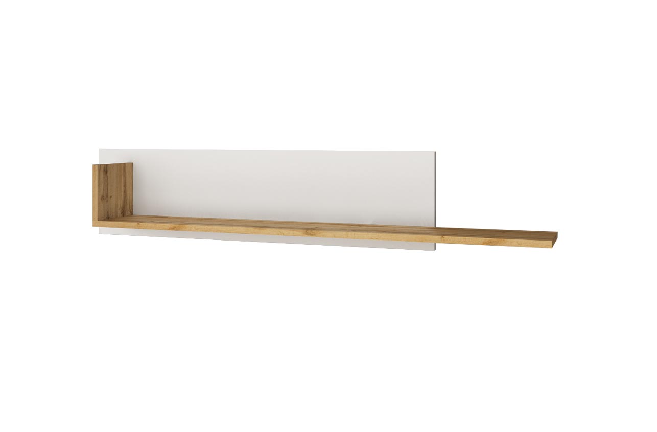Открытую навесную полку шириной 129 см и глубиной 18 см можно установить в гостиной, спальне или рабочем кабинете. На ней можно хранить книги и сувениры, все, что должно быть в зоне близкого доступа. Повесив ее на нужной высоте, достать вещи будет очень просто. Навесная полка «Таурус» в комбинации белого цвета и дуба вотана ‑ это всегда стильное и организованное хранение.