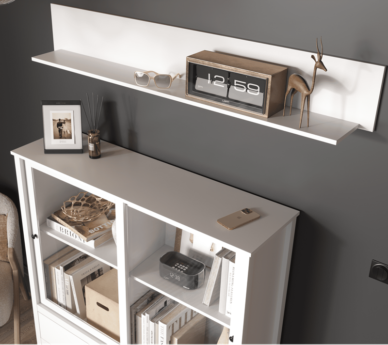 Белую полку Ewa (Helga) подвешивают на стену с помощью кронштейнов. Ее простой и стильный дизайн гармонично вписывается в обстановку спальни, детской, прихожей и гостиной. Она имеет все признаки современного и скандинавского стиля: простота, функциональность и максимальное удобство пользования. Чтобы поставить или взять вещь с такой полки, вам потребуется минимум усилий. К ней всегда можно подобрать любую мебель из серии «Ева (Хельга)»: тумбу, комод, витрину, шкаф или предмет из других коллекций.