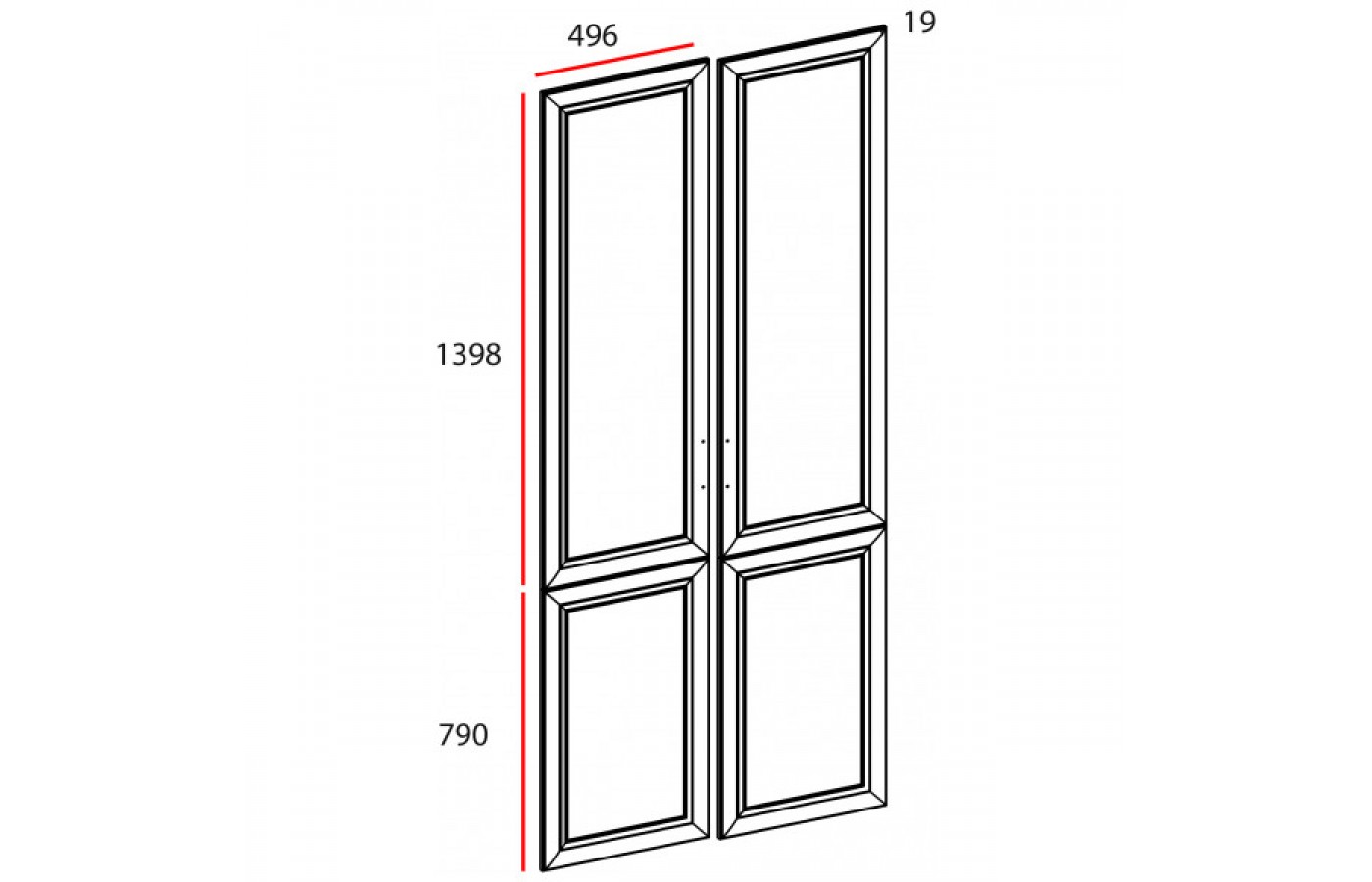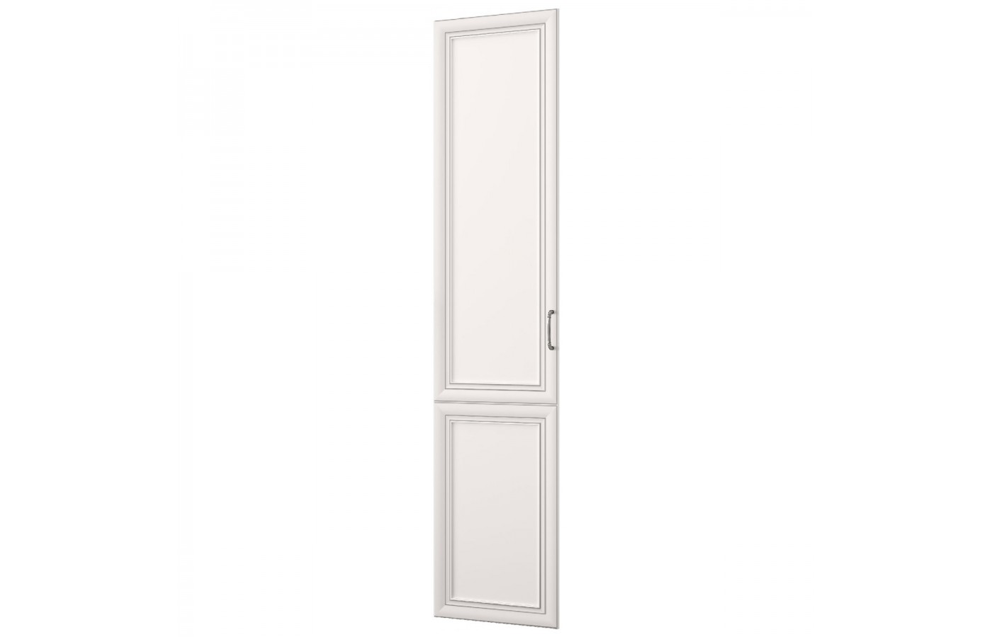 Материал: рамочно-филенчатая конструкция глухого фасада, рамка МДФ – 19 мм (с нанесением патины), филенка ЛДСП – 8 мм, цвет – белый 605 SM.