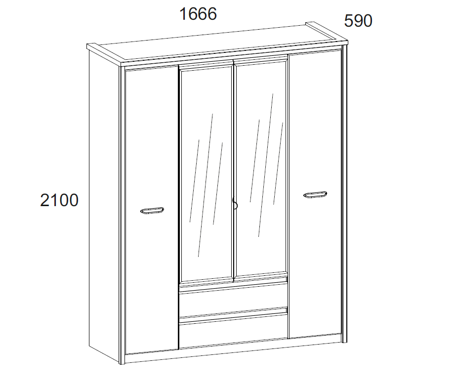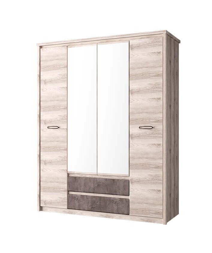 Шкаф JAZZ 4DG2S Z из ЛДСП содержит сразу несколько систем хранения: штанга, антресоль, два ящика и восемь полок. Такая модель шириной 166 см и глубиной 59 см легко уместит внутри белье и длинную одежду на вешалках. В ее ящиках можно хранить мелкие вещи типа ремней, носок и перчаток. Полки легко переставляются по высоте.