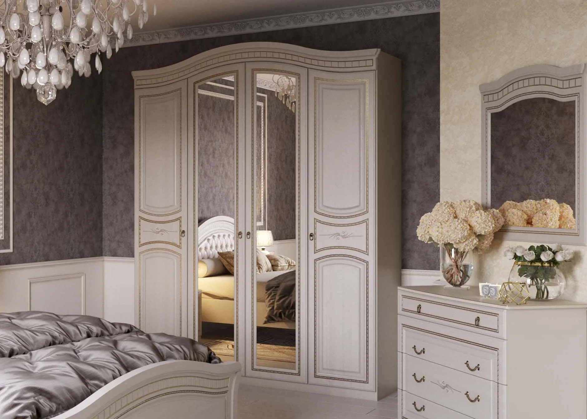 Шкаф в цветовом решении "Ваниль / Ясень жемчужный" придаст интерьеру воздушность, ощущение роскоши, нежности и легкости, наполнив спальную комнату светом.