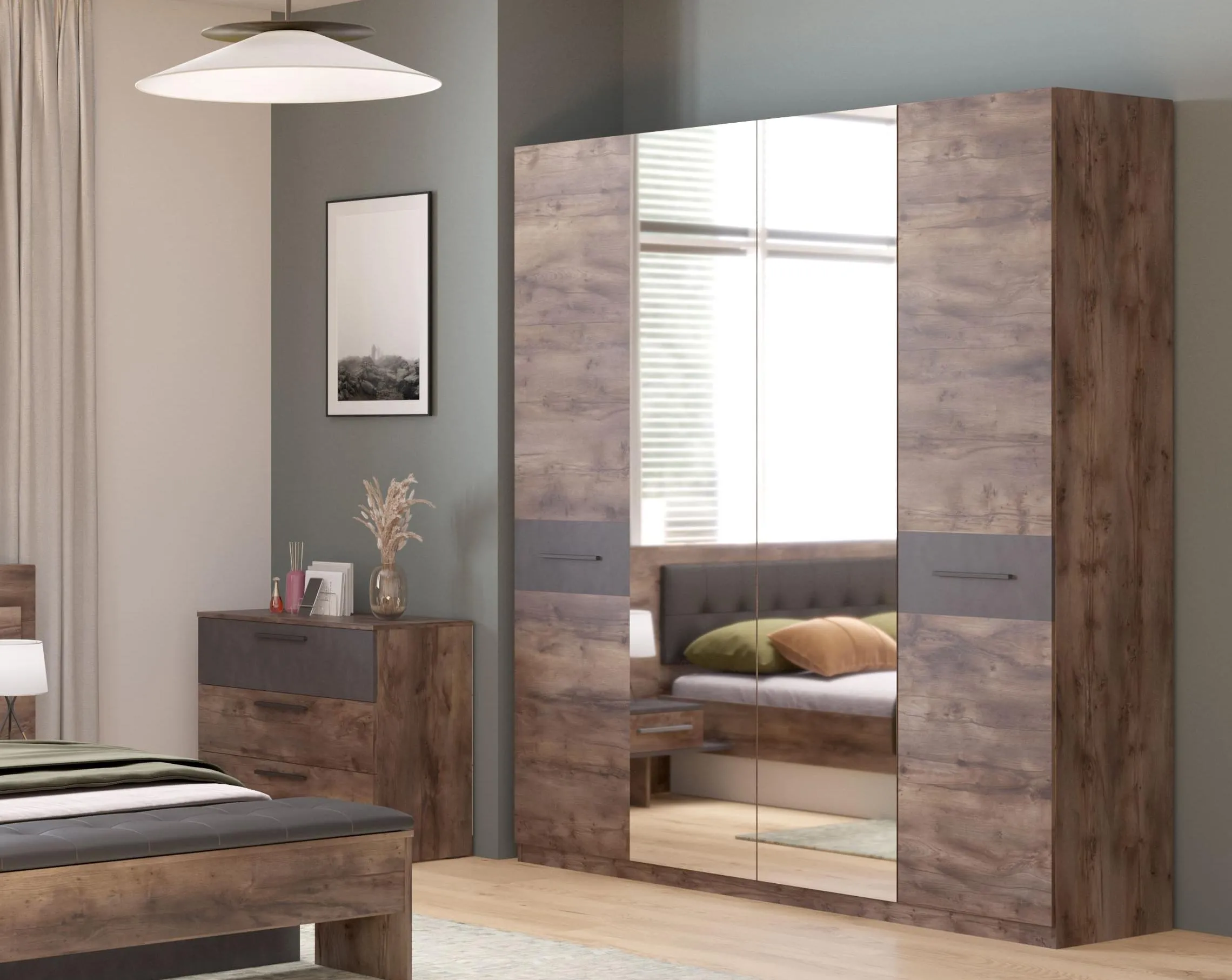 Четырехдверный шкаф с зеркалом для спальни "Глазго" — яркий пример реализации данной концепции. В таком цветовом исполнении мебель для спальни можно вписать в самые разные интерьерные стили: цветовая гамма отлично сочетается с другими оттенками. А благодаря компактности останется место и для других функциональных предметов, которые обязательно должны быть в комнате.