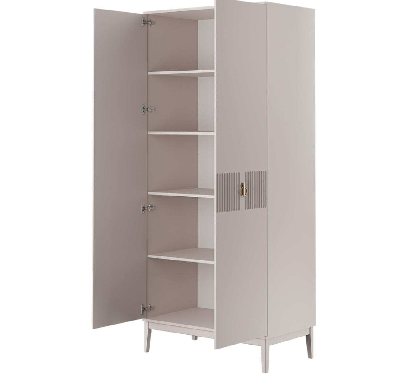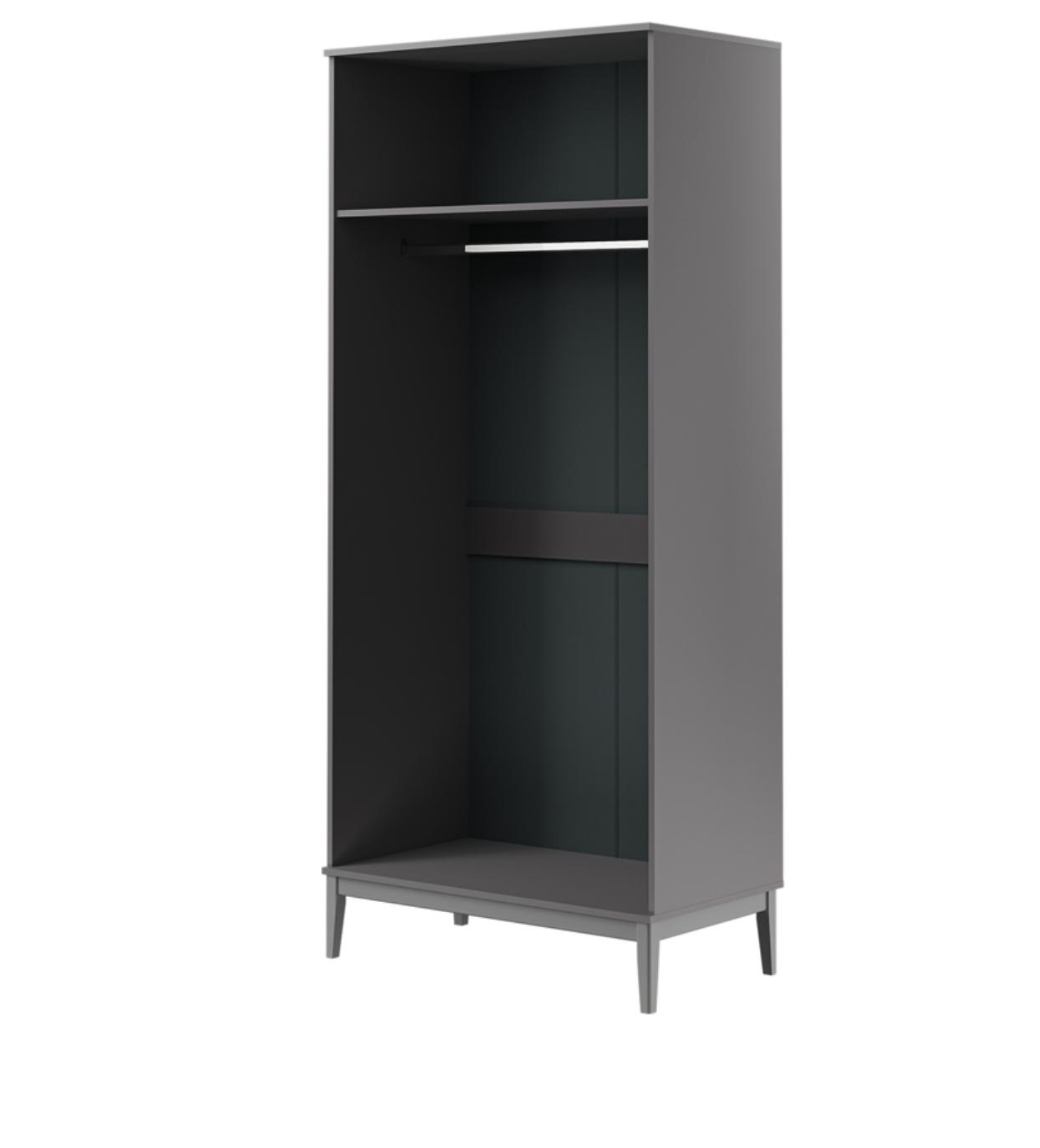 Шкаф имеет как полки, так и штангу для одежды, которые могут быть установлены по вашему желанию, обеспечивая максимальную гибкость и удобство в использовании.
